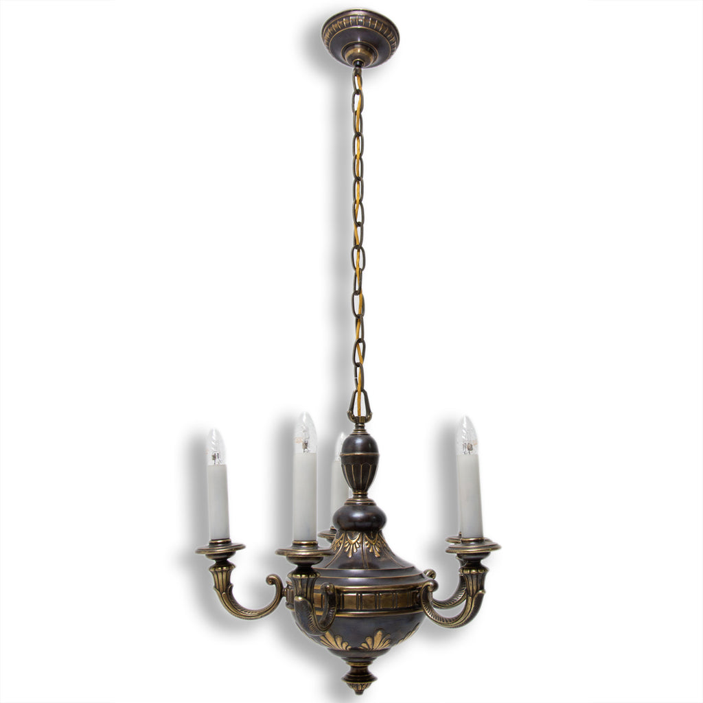 Historicizing Brass four-armed chandelier, turn of the 19th and 20th century
