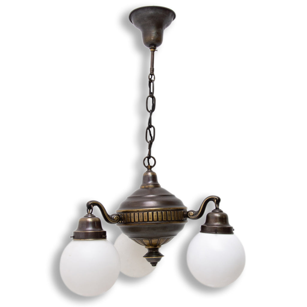 Historicizing Brass three-armed chandelier, turn of the 19th and 20th century