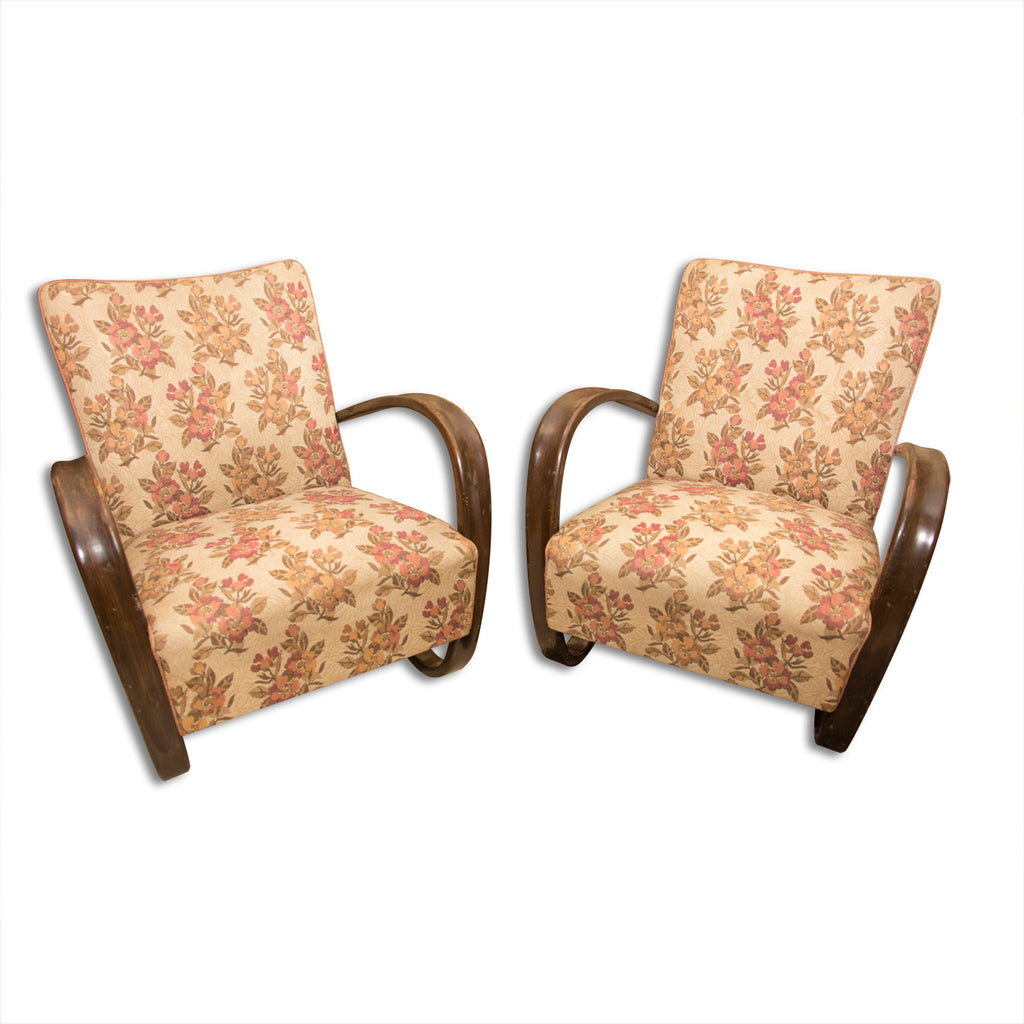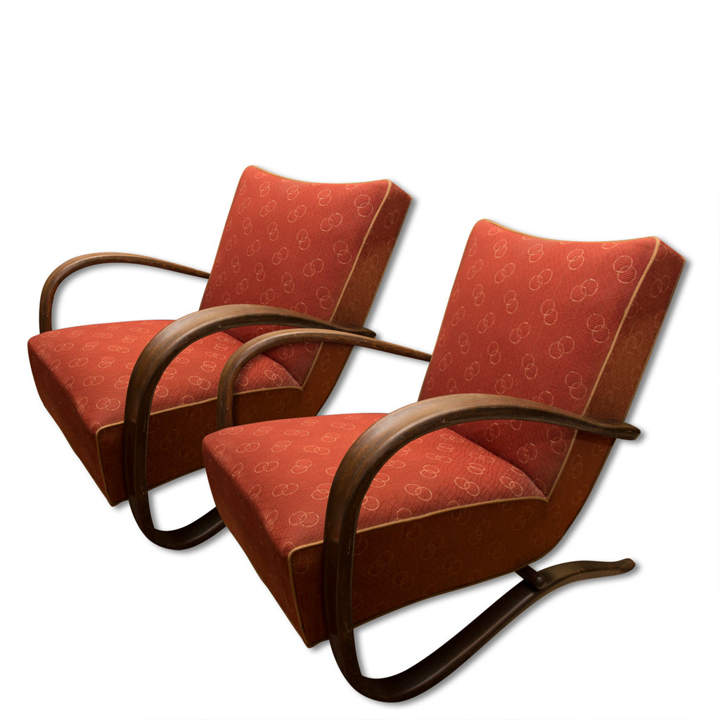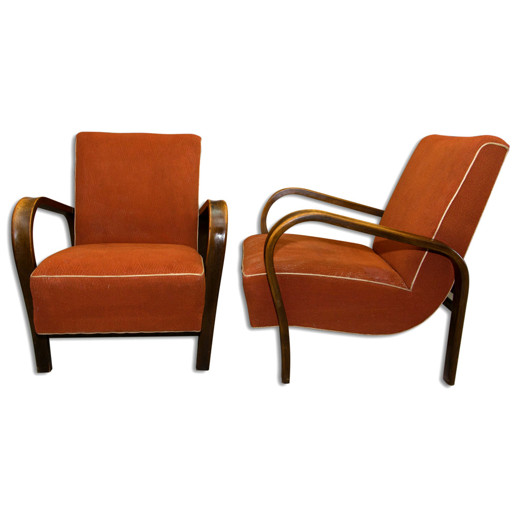 Jindrich Halabala, Pair of Lounge bentwood armchairs H-269