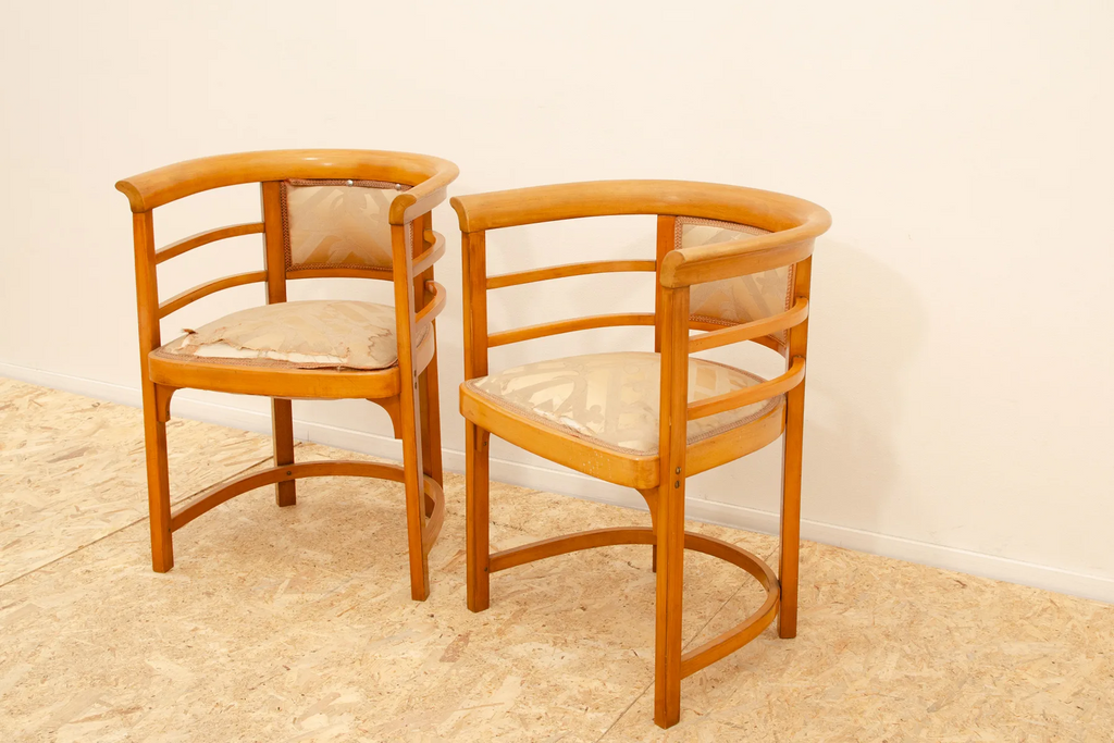 These bentwood upholstered chairs were designed in the style of Josef Hoffmann and made in Austria in the 1920´s.