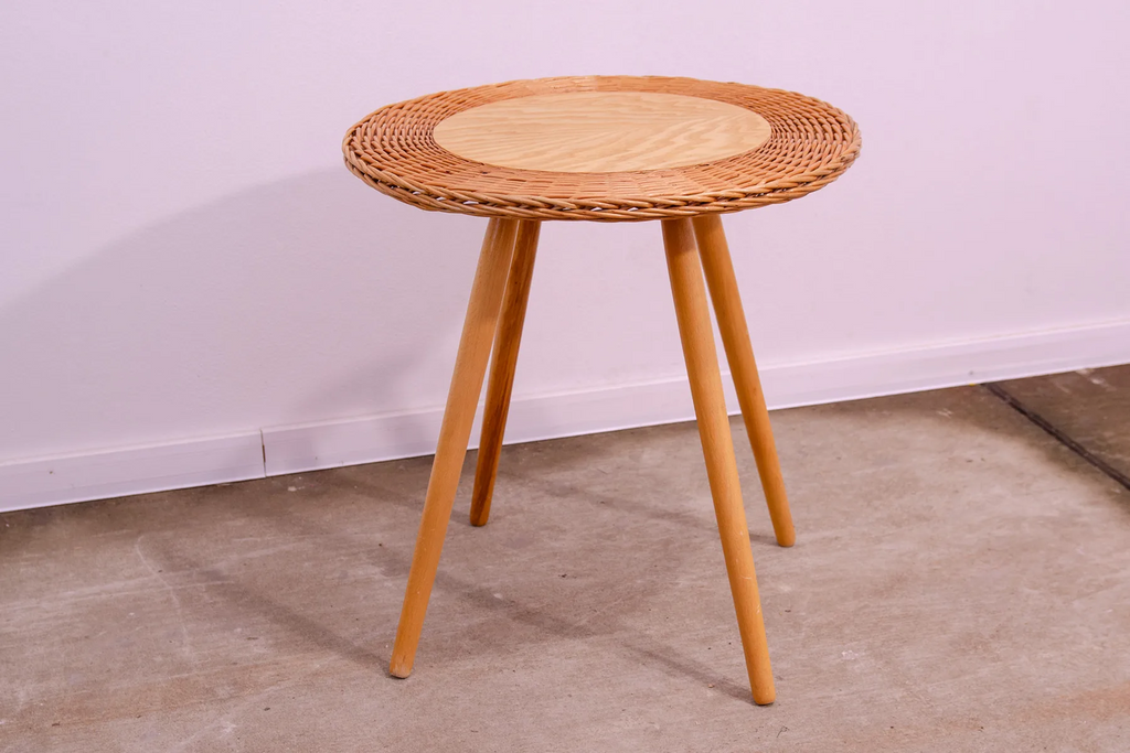 Mid century rattan coffe table by Jan Kalous for éLUV, 1960s, Czechoslovakia