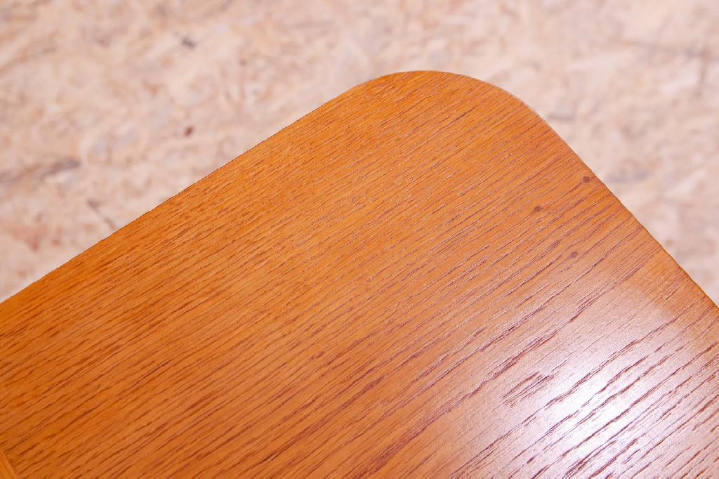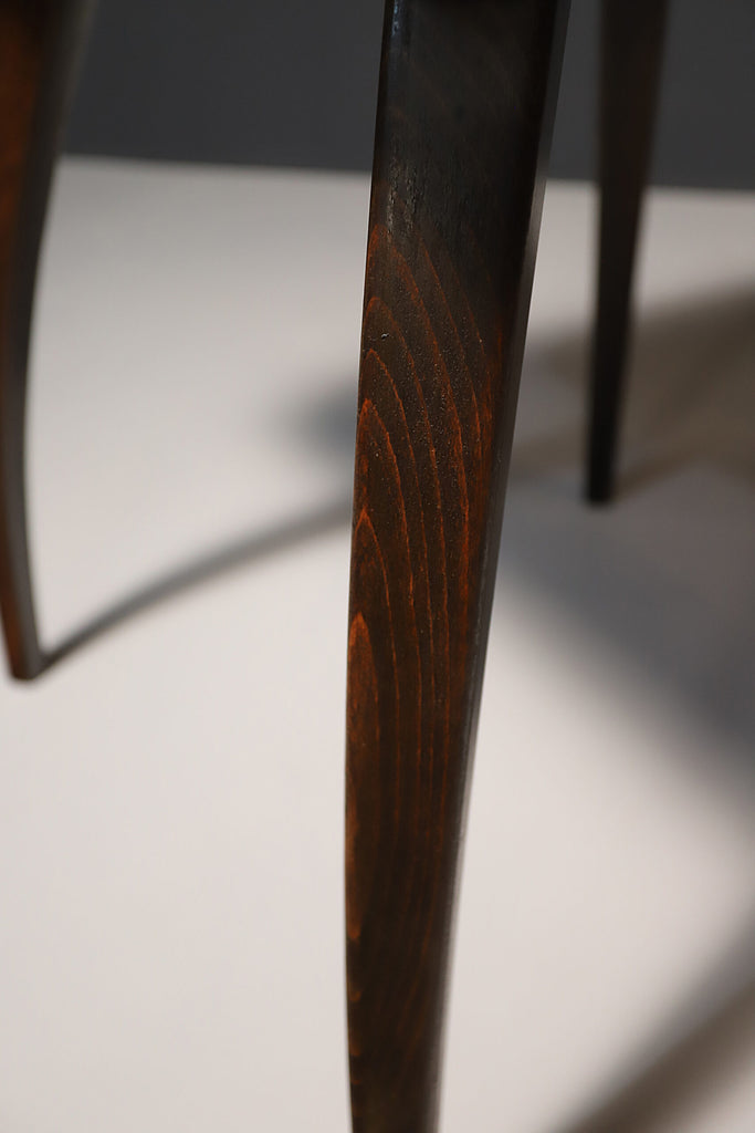 It has a distinctive curved legs and rounded corners. It´s made of beech wood.