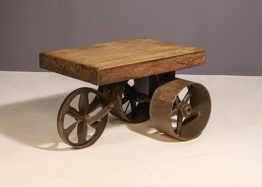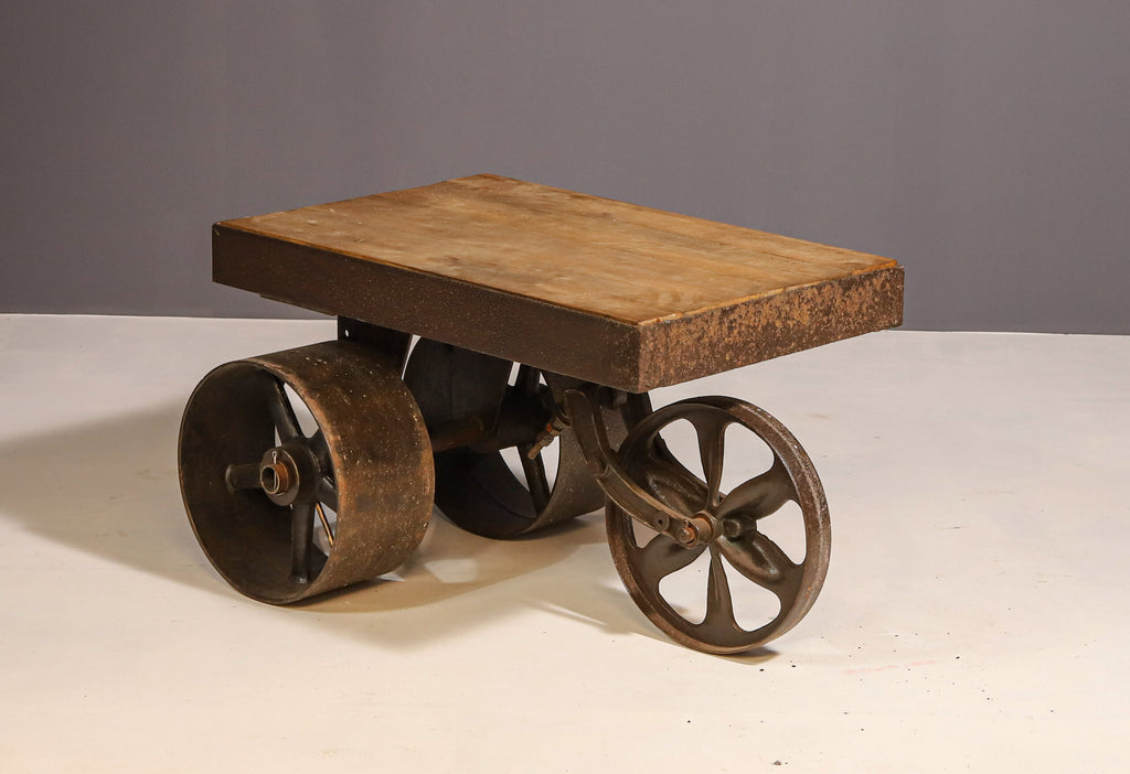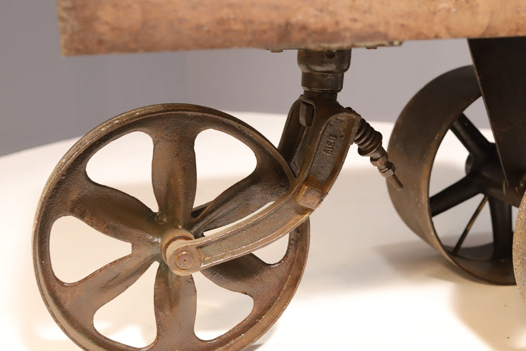 Mid century industrial table on wheels, 1950s, Czechoslovakia
