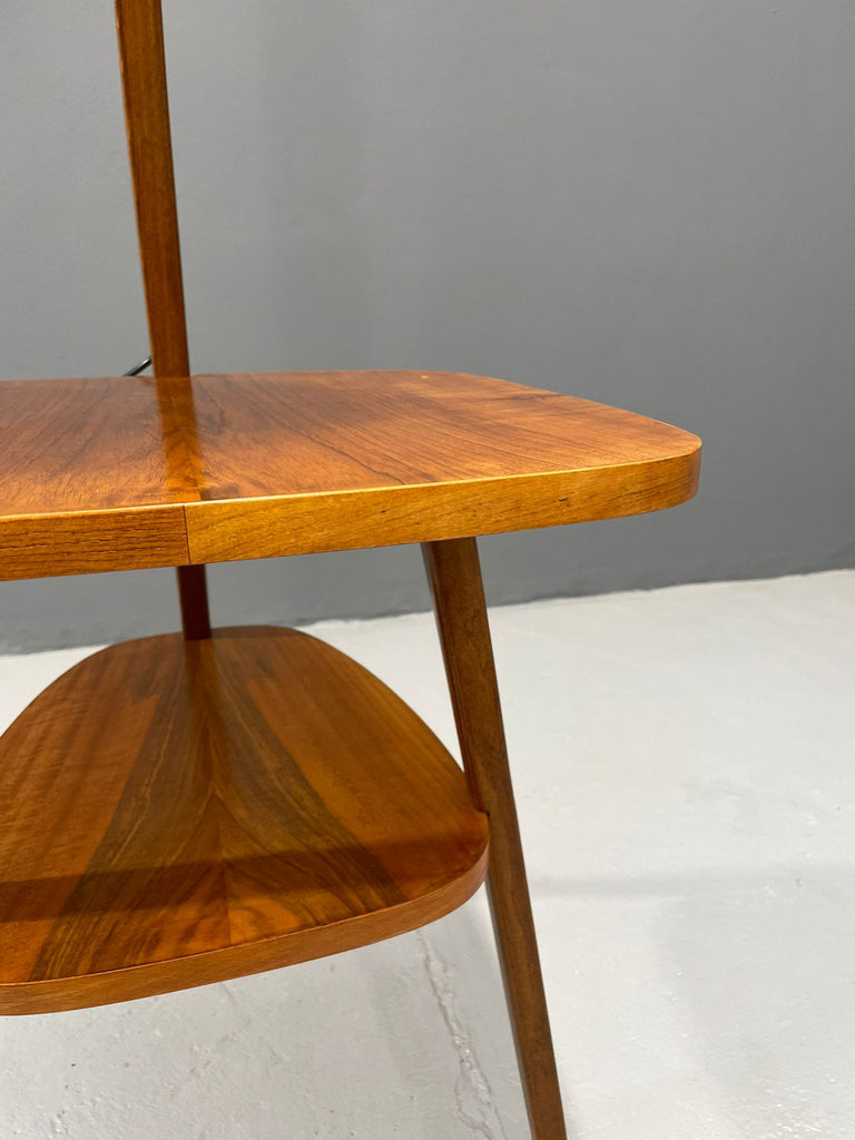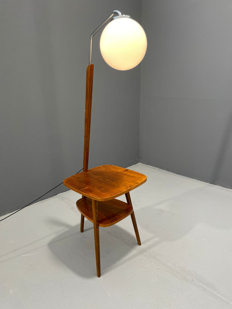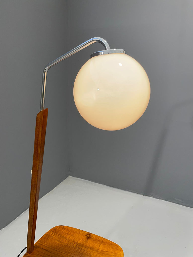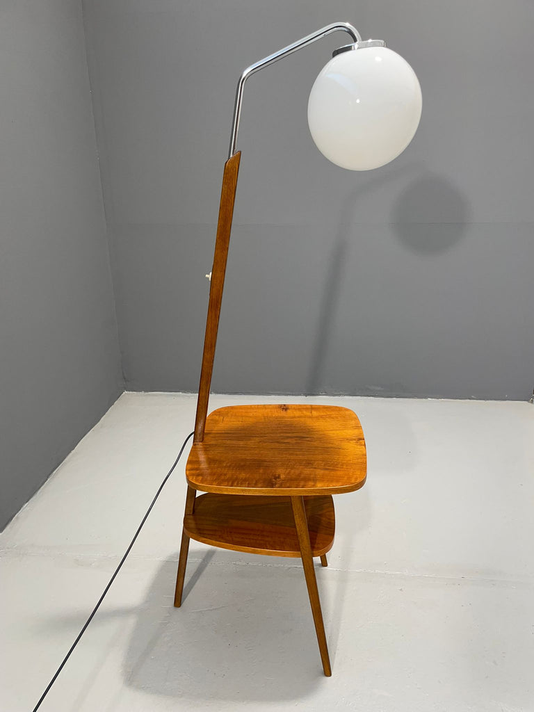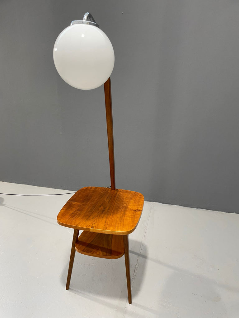 Art Deco Floor Lamp with Milk Glass and Side Table, Thonet, 1950s – Czechoslovakia