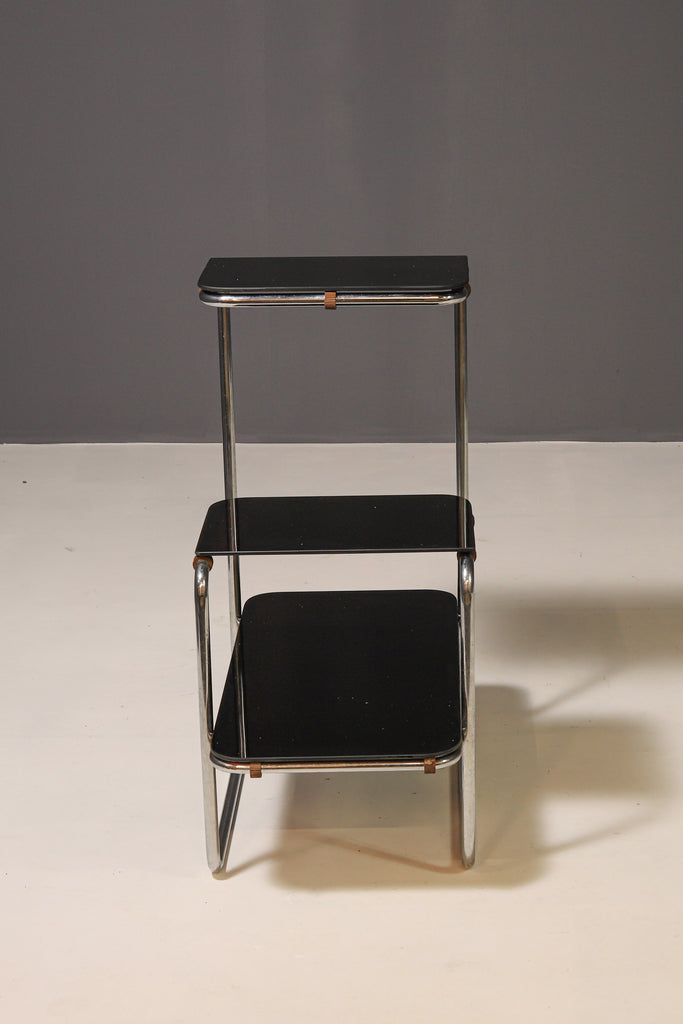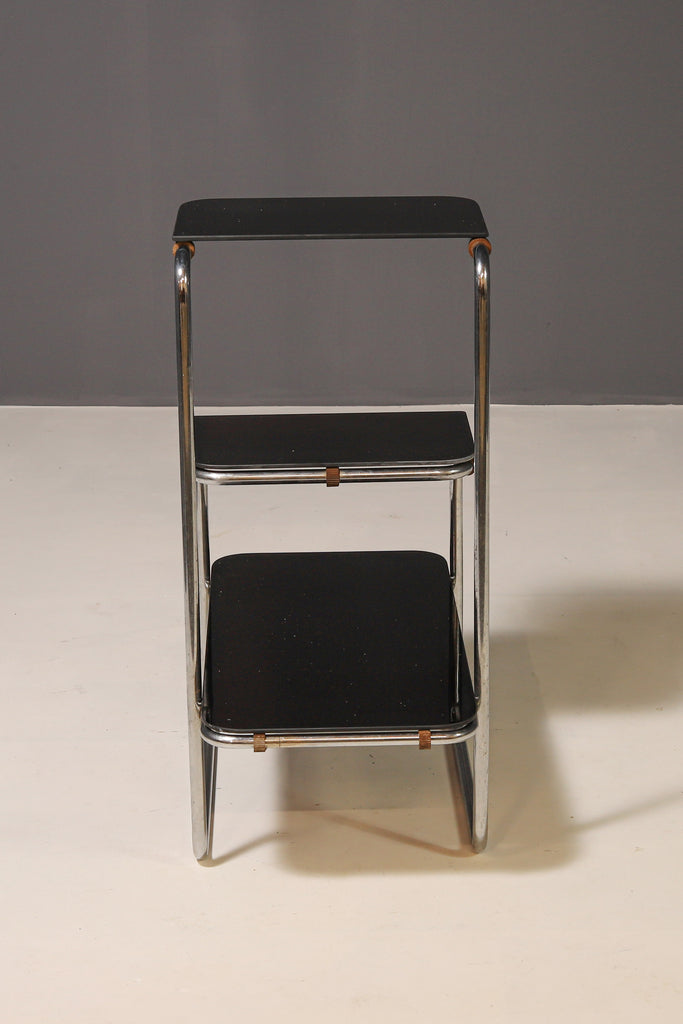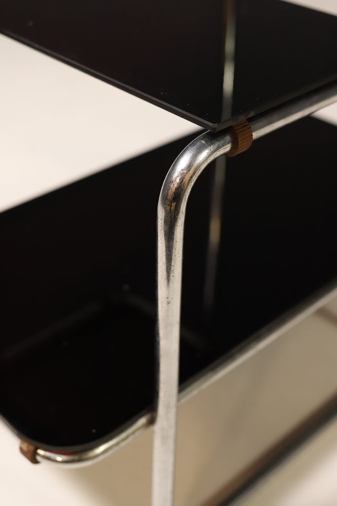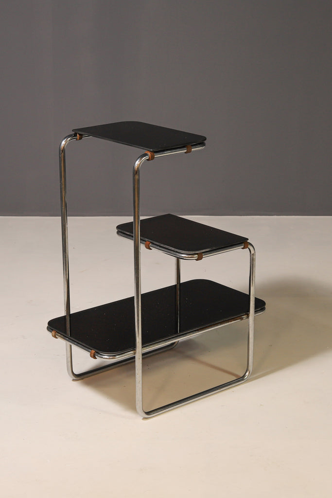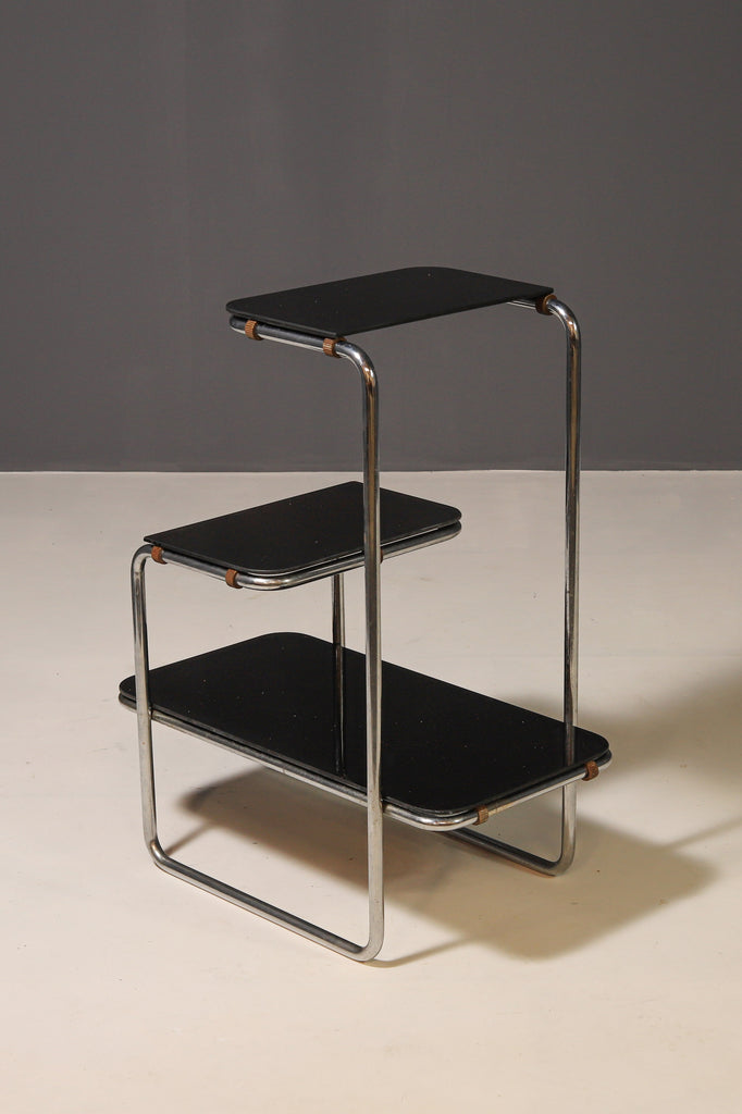 This elegant functionalist étagère was originally designed by Anton Lorenz and produced in the 1930s–1940s by the renowned manufacturer Robert Slezák, later known as the national company Kovona. It is a stunning piece of furniture that perfectly combines practicality with the timeless design characteristic of the functionalist period.