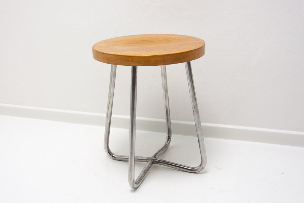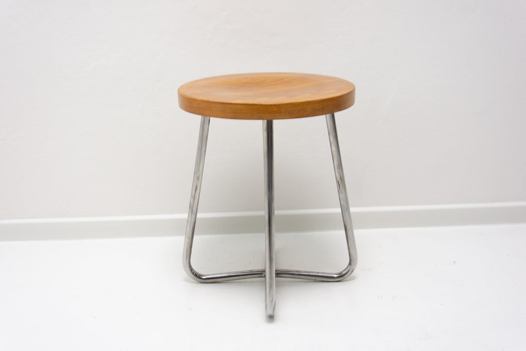 Midcentury Bauhaus tubular stool, Robert Slez k, 1930s, Czechoslovakia