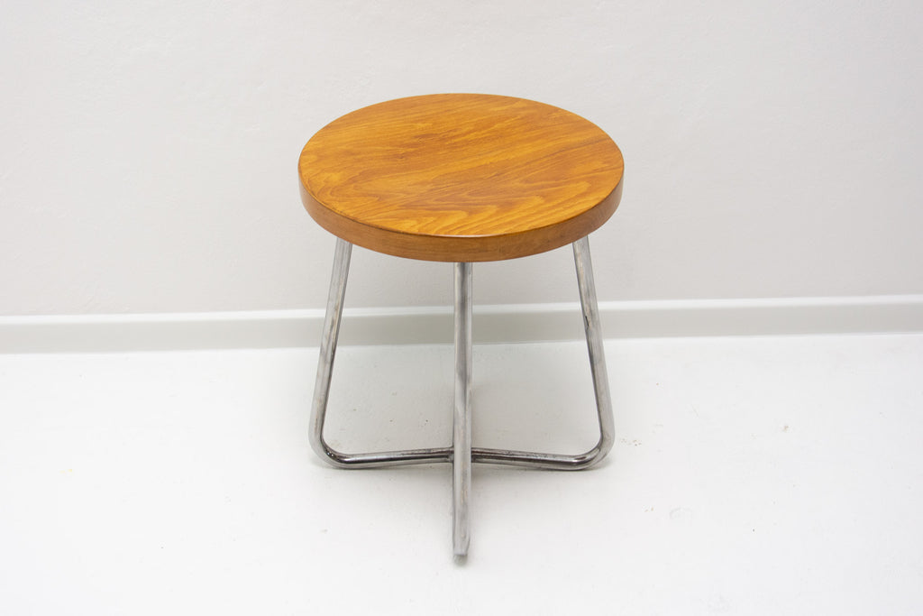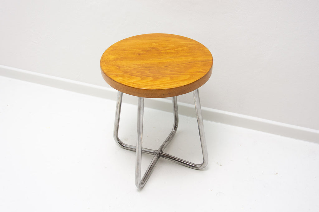 This midcentury chrome-plated stool was made by Slezák company, which focused on the production of tubular furniture, in the 1930s. It was manufactured in the former Czechoslovakia.