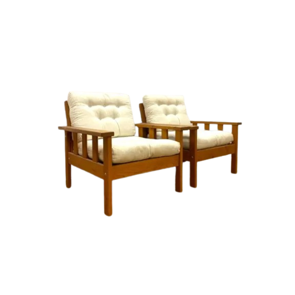 Pair of Pine Lounge Chairs, 1980s, Sweden