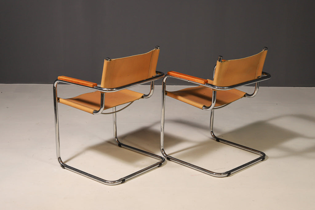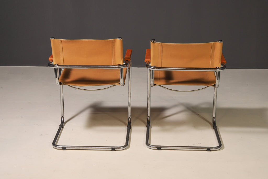 Pair of Cantilever Tubular Steel Armchairs by Marcel Breuer, 1970Ôs