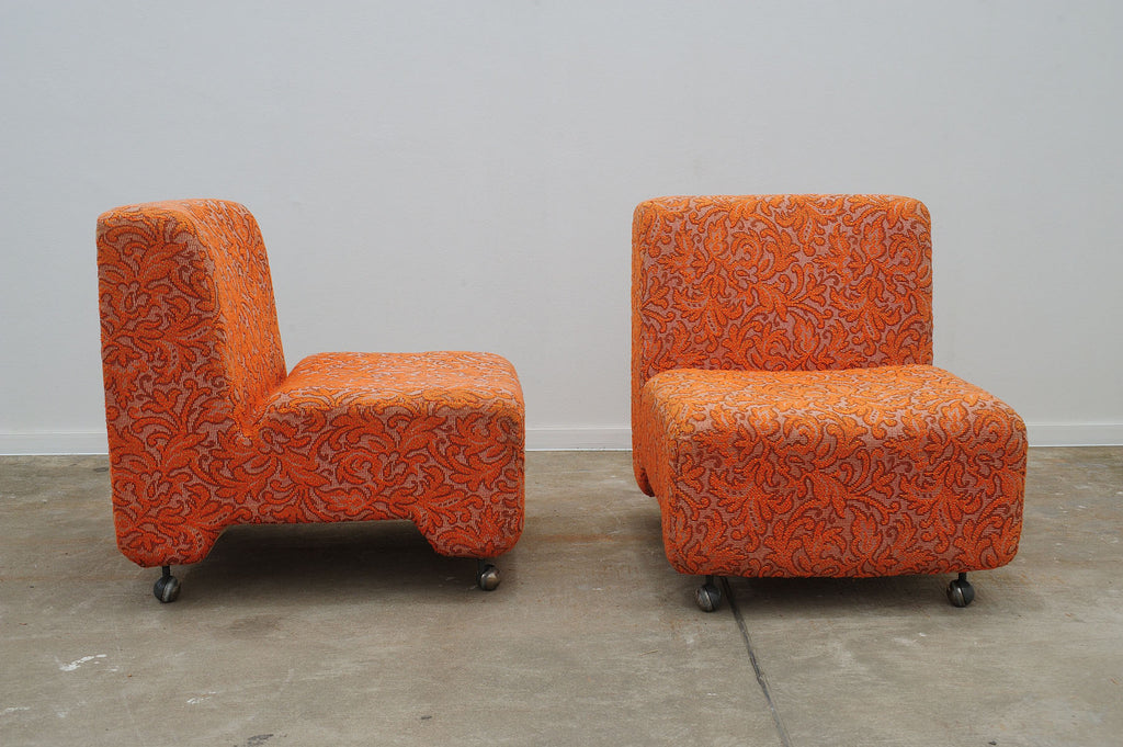 Eastern bloc Vintage armchairs on wheels, 1980s, Czechoslovakia