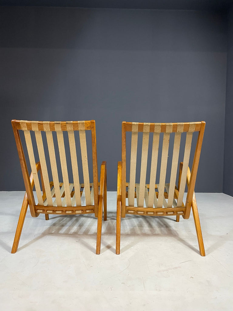 A refined pair of vintage lounge chairs designed by Jan Vaněk in the 1940s in former Czechoslovakia.