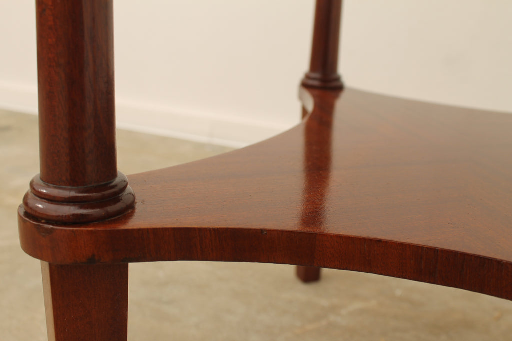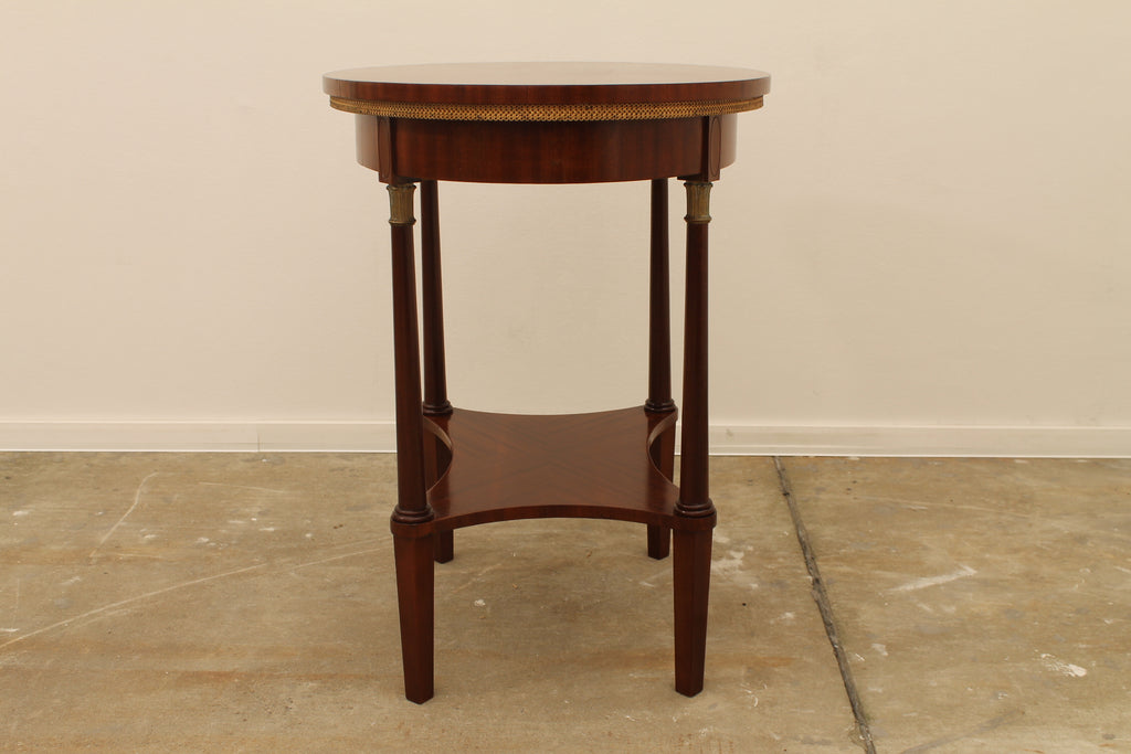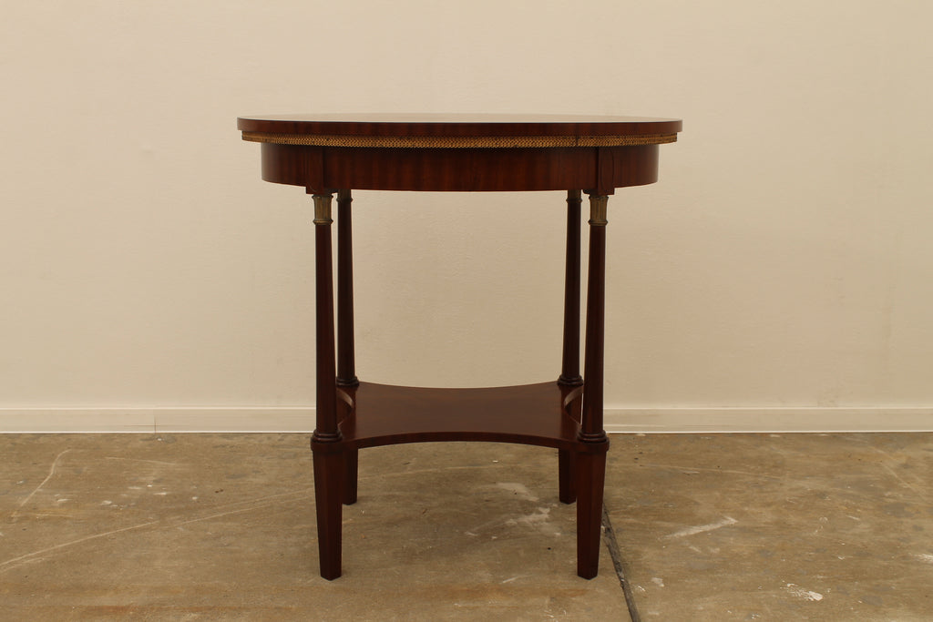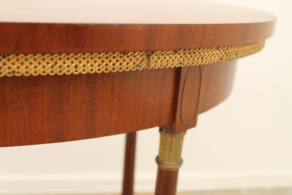 This mahogany side table was made circa in 1915. It features elements and shapes including gilded decorative motifs typical of the Art Nouveau period. It was manufactured in Austria-Hungary. It´s made of solid wood with mahogany veneer.