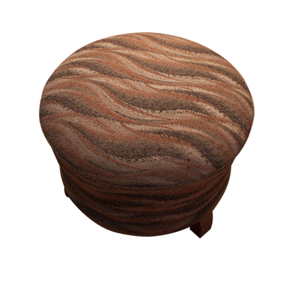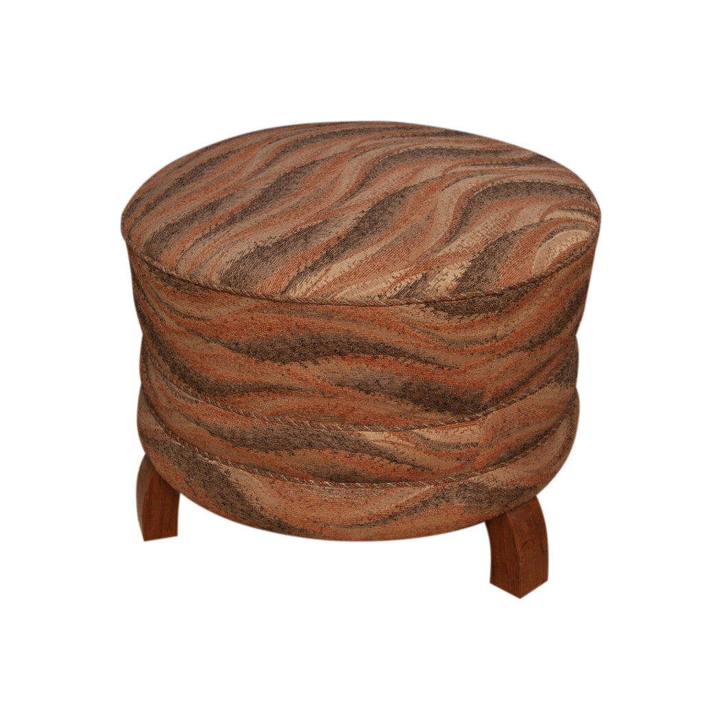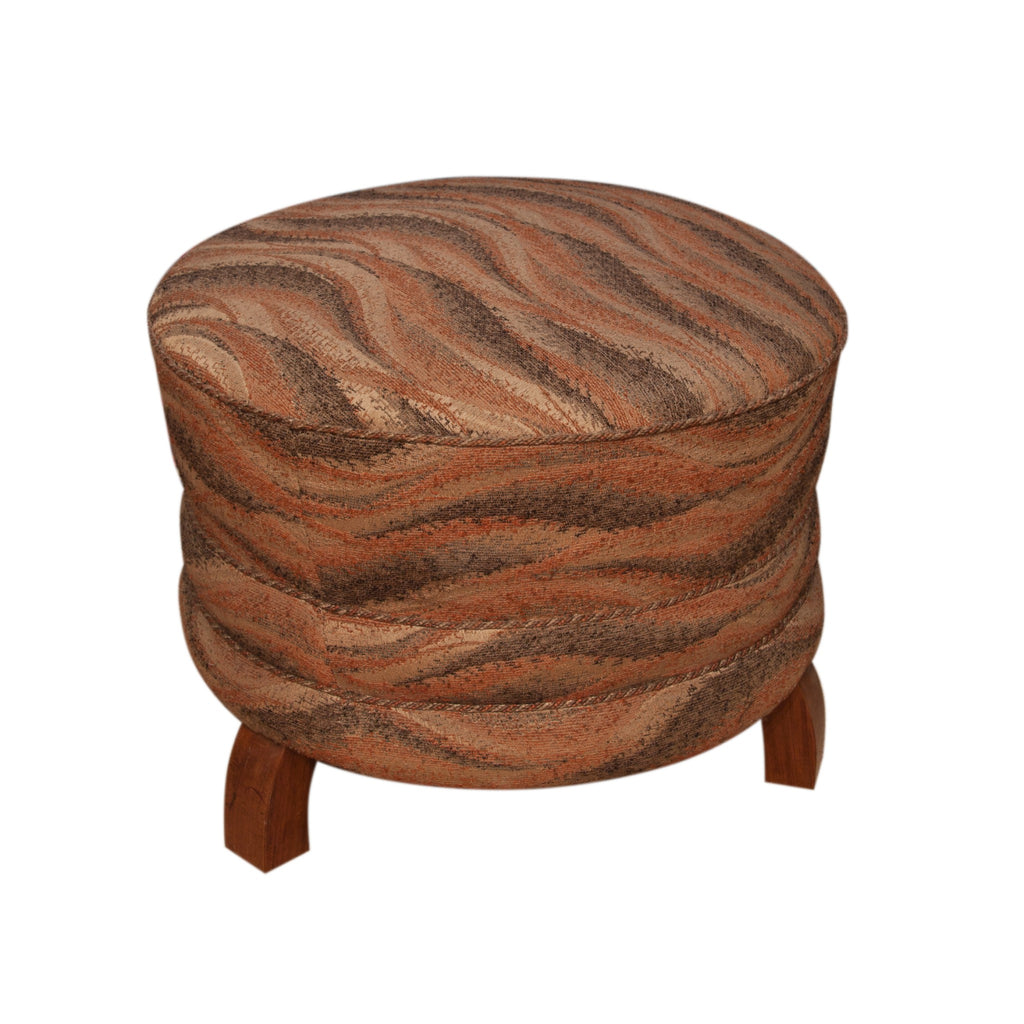 Pair of Art Deco period foot rests, or pouffes, circular form with three wooden feet. Probably French. Good condition wood and upholstery. 49x45x49 cm.