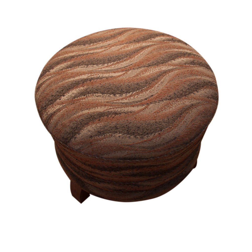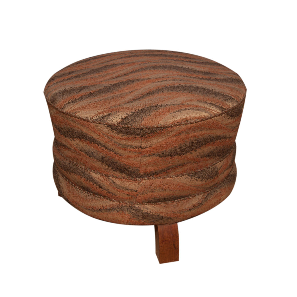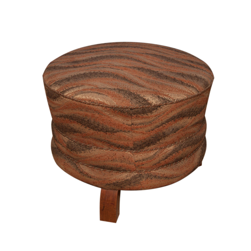 Pair of Art Deco period foot rests, or pouffes, circular form with three wooden feet. Probably French. Good condition wood and upholstery. 49x45x49 cm.