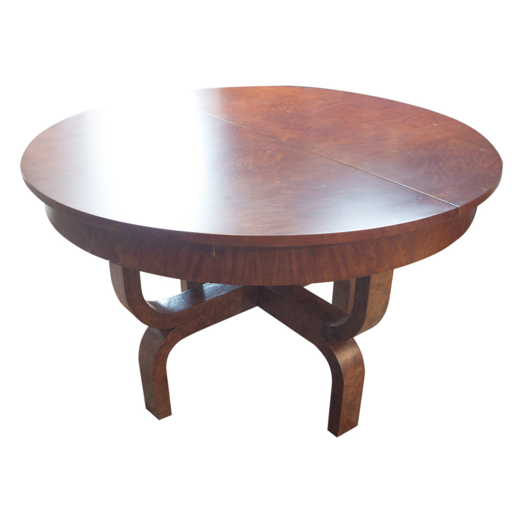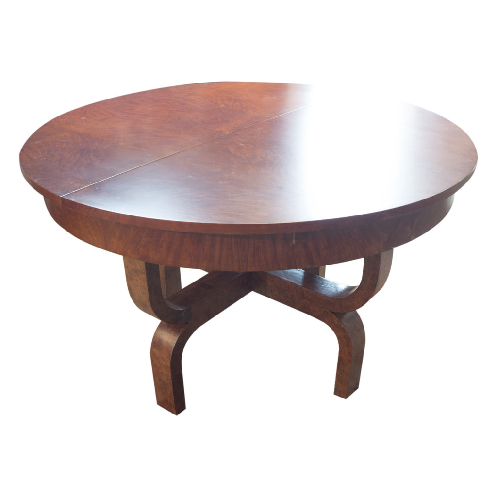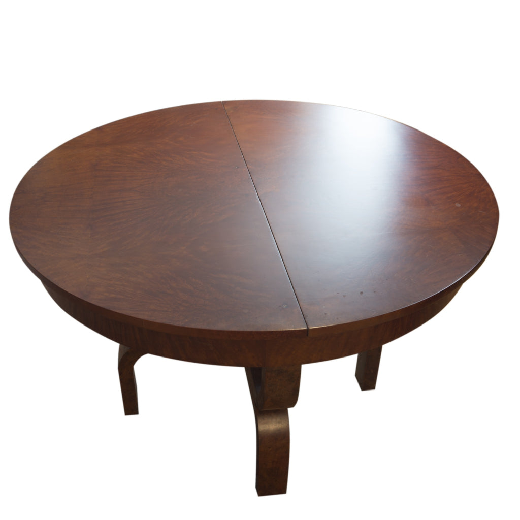 Rare large German circular Art Deco dining table from the 1930s period with extendable table-top.