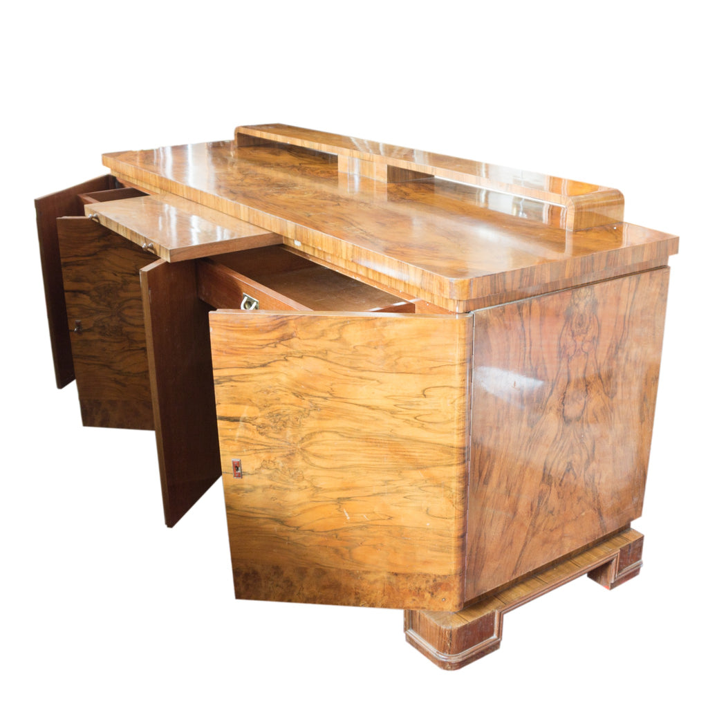 Elegant buffet-sideboard from the 1930s. Solid corpus. Walnut veneer. Surface unrestored. Overall in a well preserved condition.