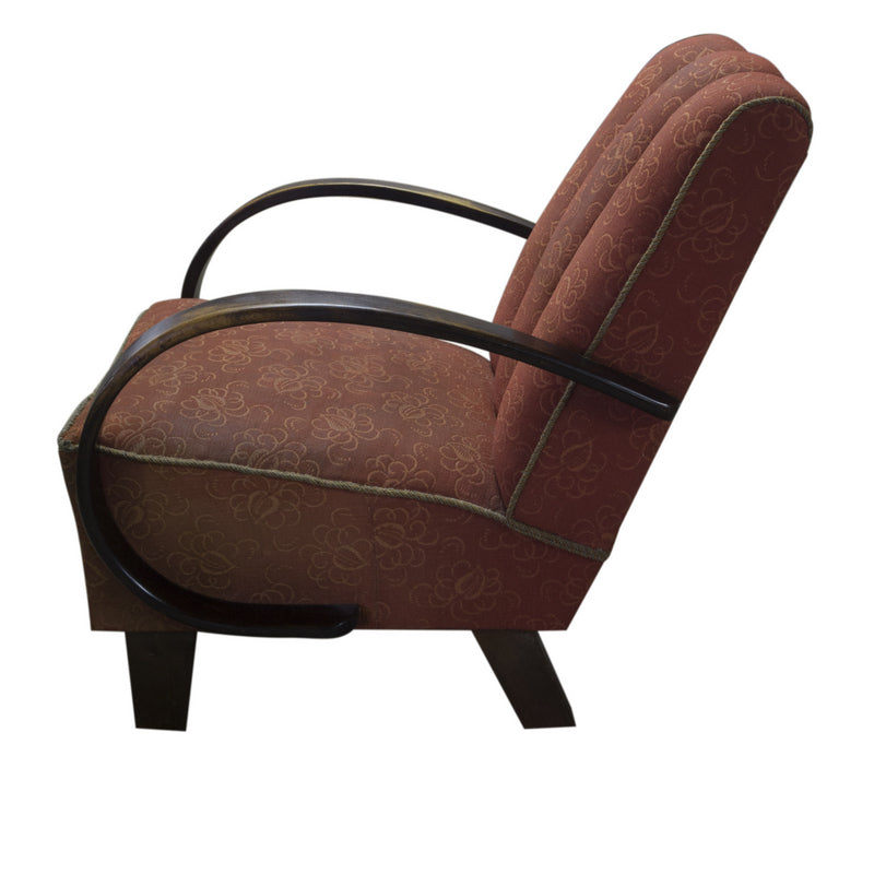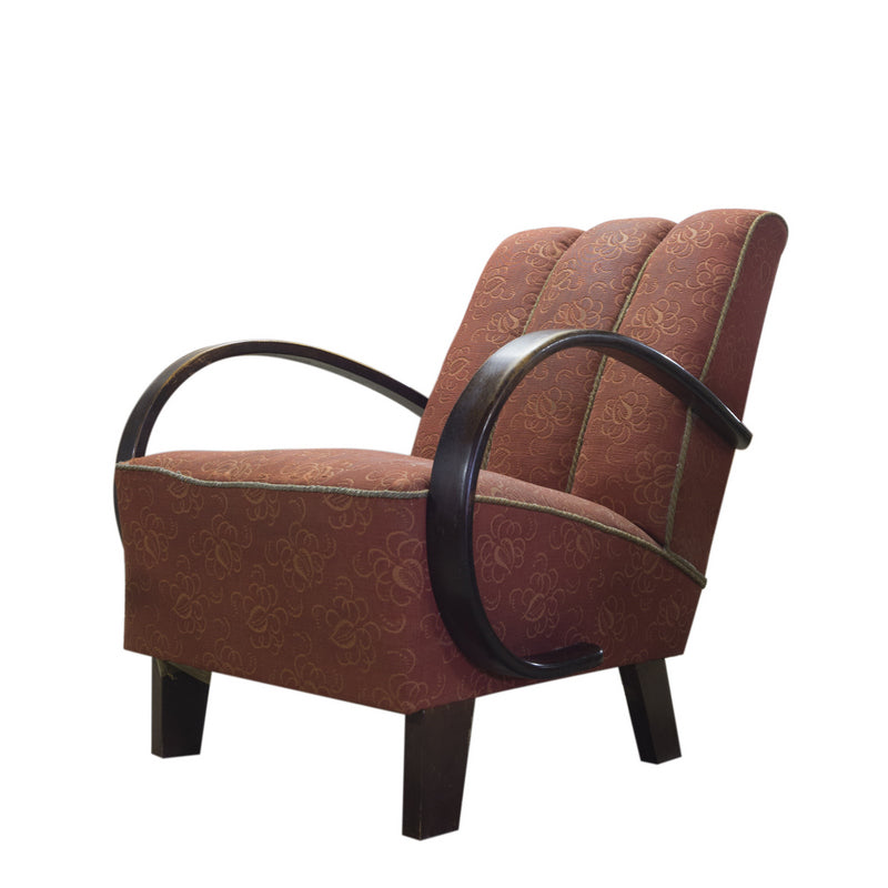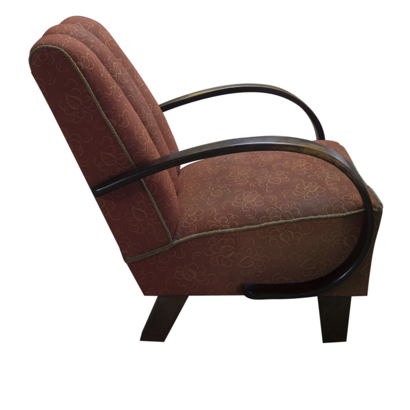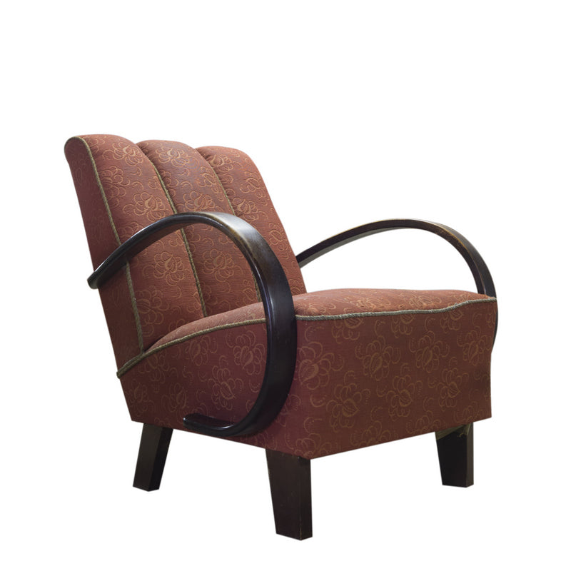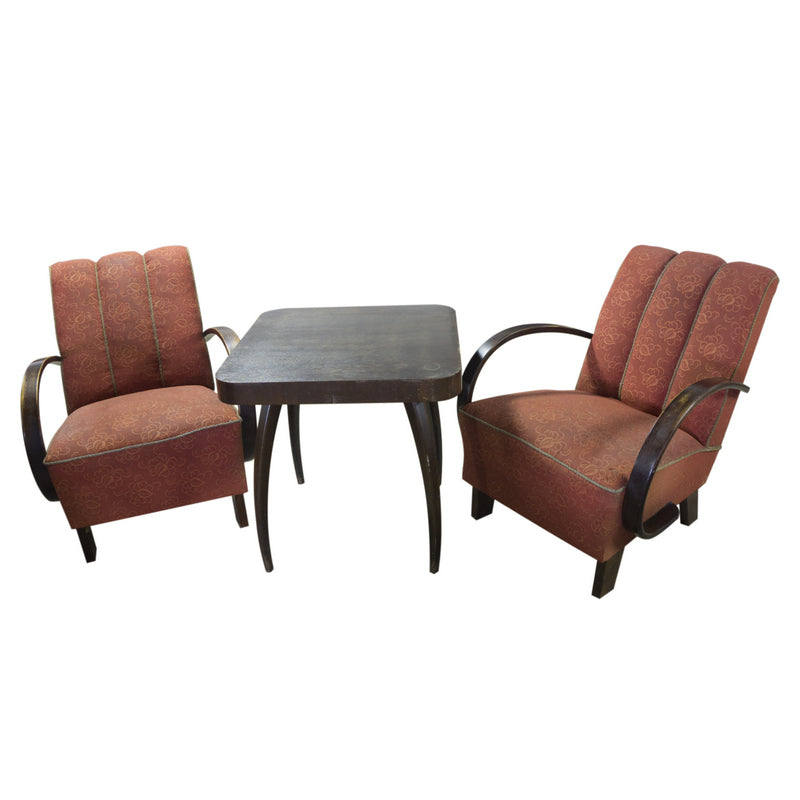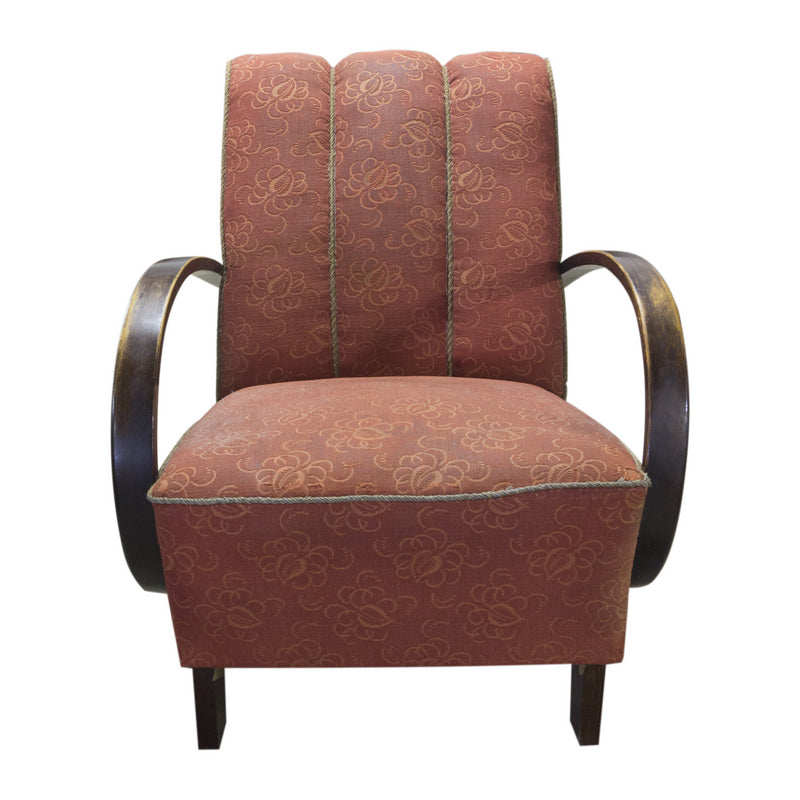 Jindřich Halabala, pair of armchairs, 1930´s, Czechoslovakia. The design by world famous and timeless architect includes two upholstered bentwood armchairs. Structure of the chairs is well preserved. Upholstery bears signs of age and use. It´suitable for reupholstery. In case of interest we provide a complete renovation of the armchairs.