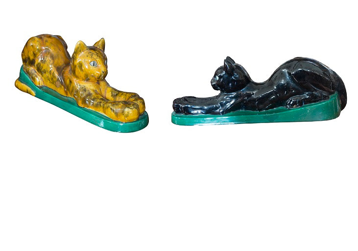 L. Mallener, life sized ceramic sculptures of two house cats, Austria cca. 1918.