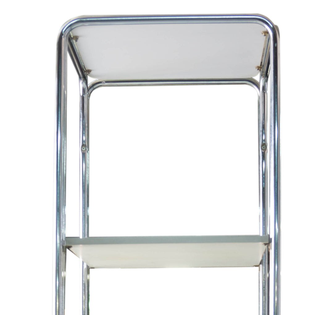Modern tubular steel shelving unit, 1970´s, Middle Europe. Laminated wooden shelves. Good condition.
