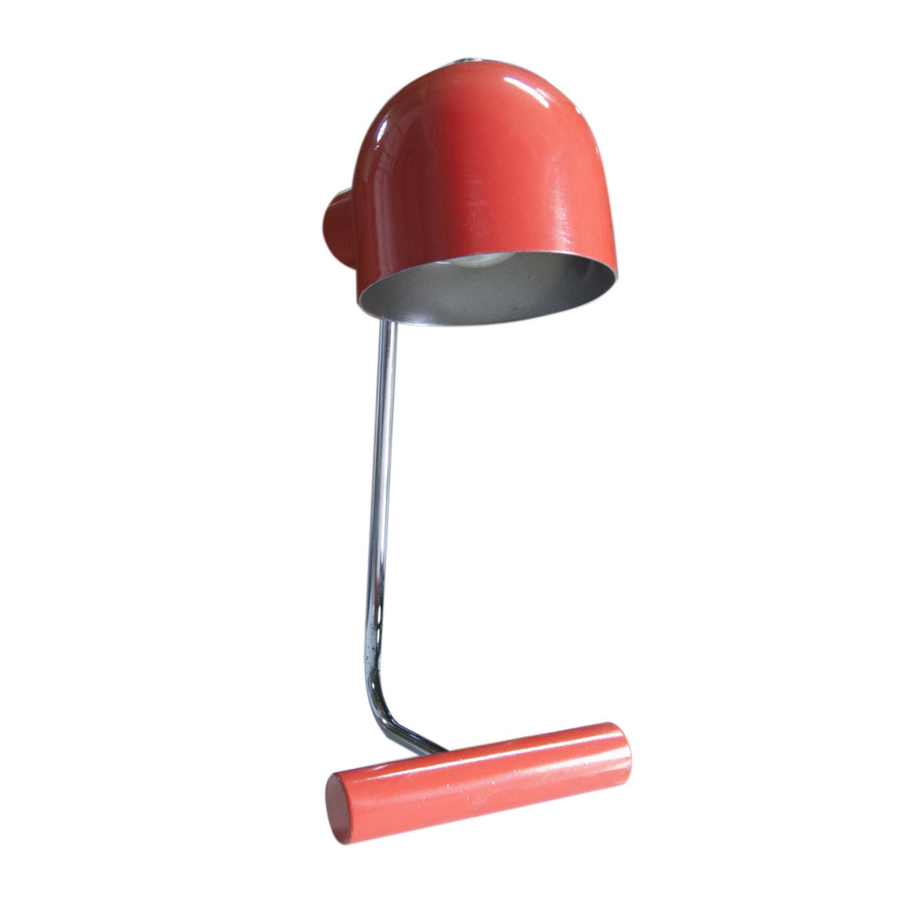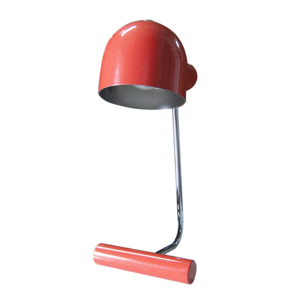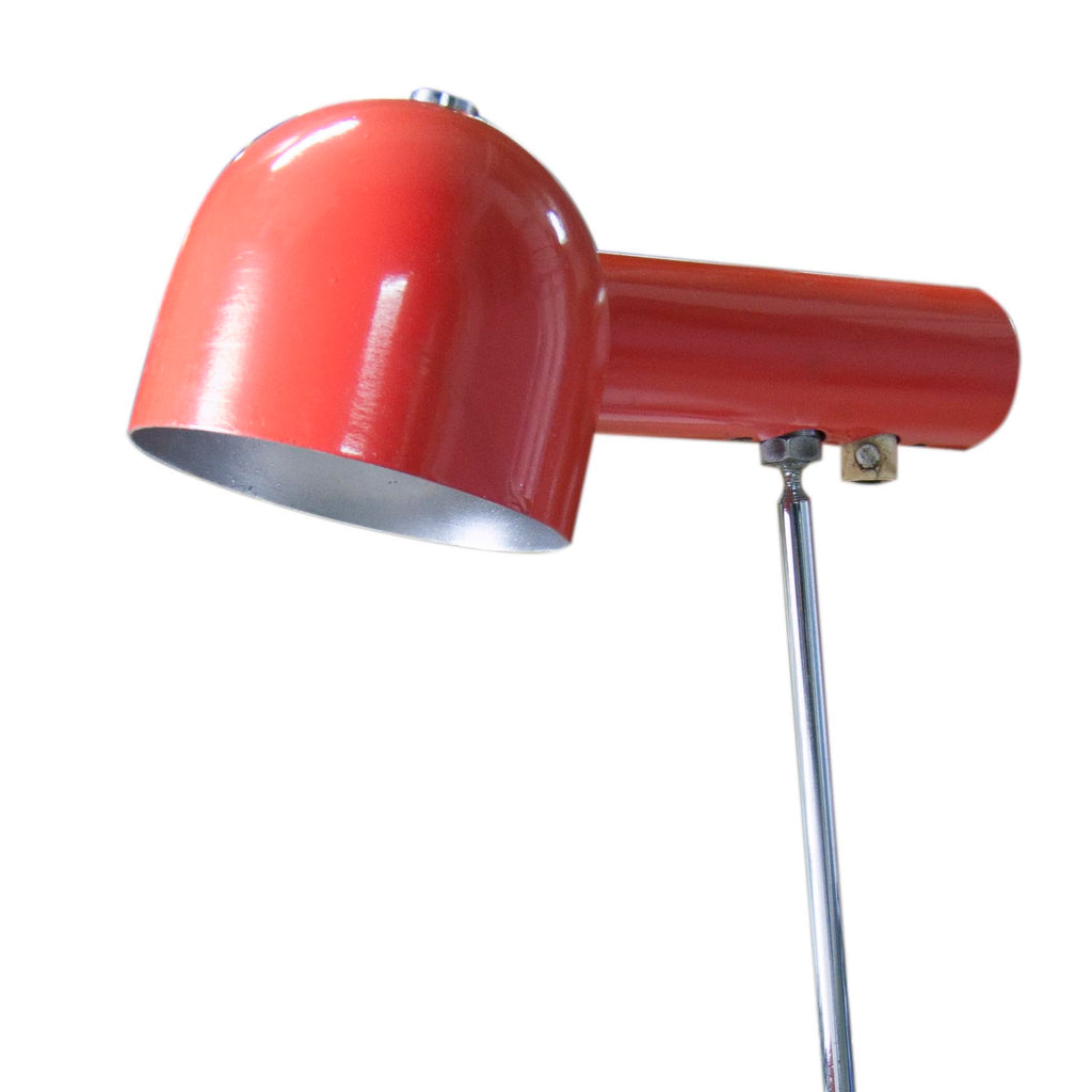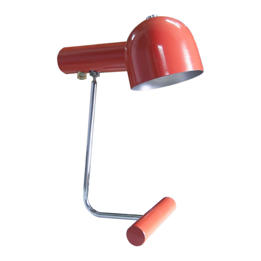 Czech modernist table lamp by Josef Hurka for Napako for Expo 58 in Brussels. Red lacquered metal. New electricity, plastic wire, standard E27 thread bulb
