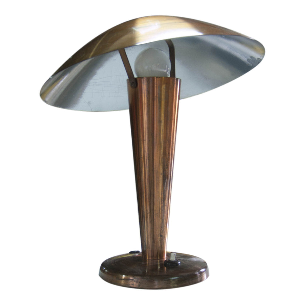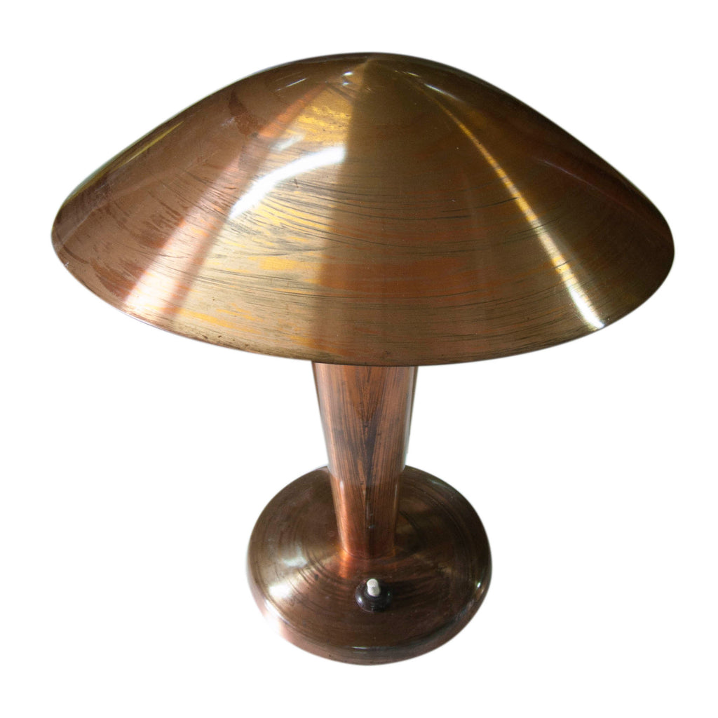 Mushroom table lamp NAPAKO, manufactured in Czechoslovakia, 1930´s. After restoration, new wiring. Original switch. The shade can be set on a tilt to direct the light. These lights are very rare, especially in copper. In excelent condition