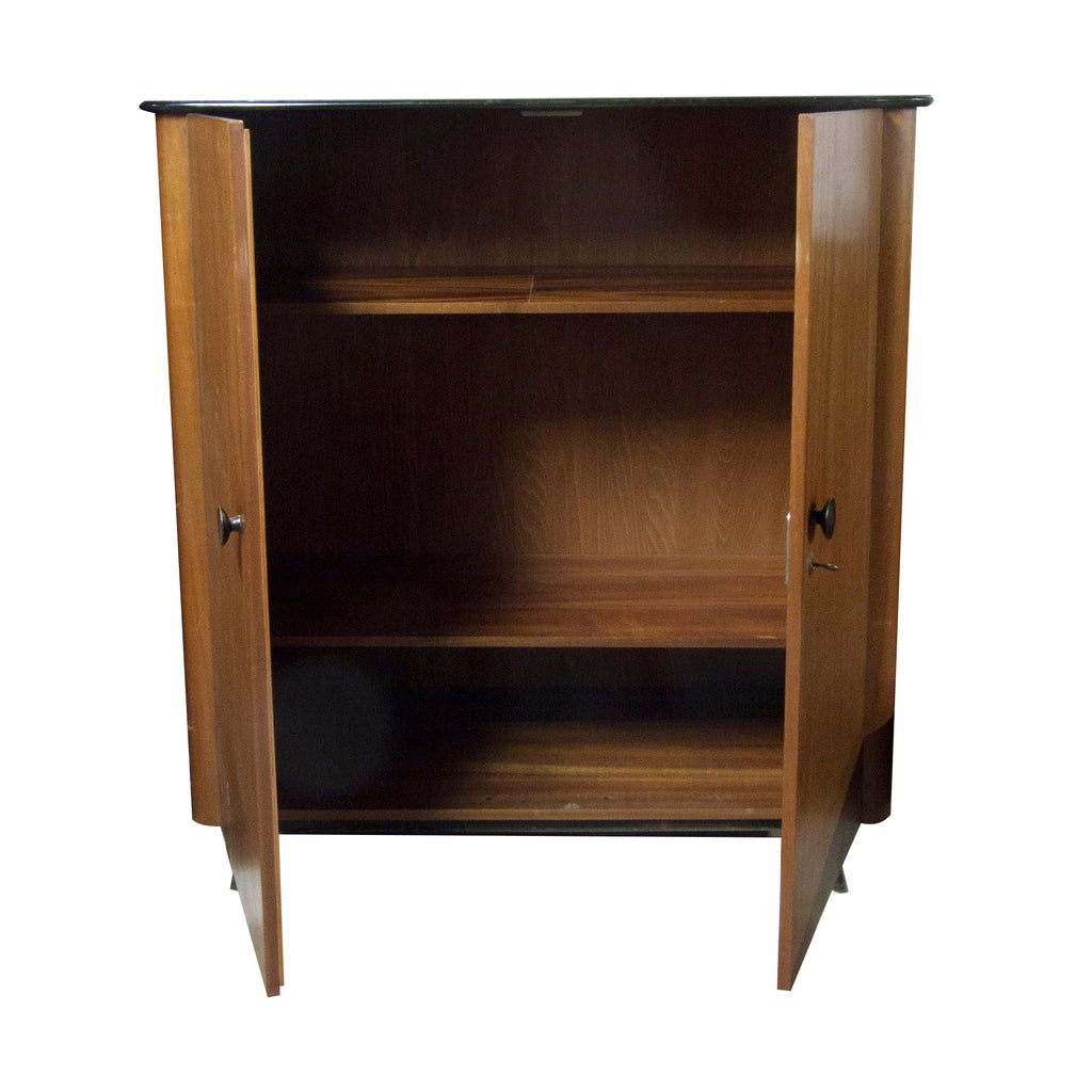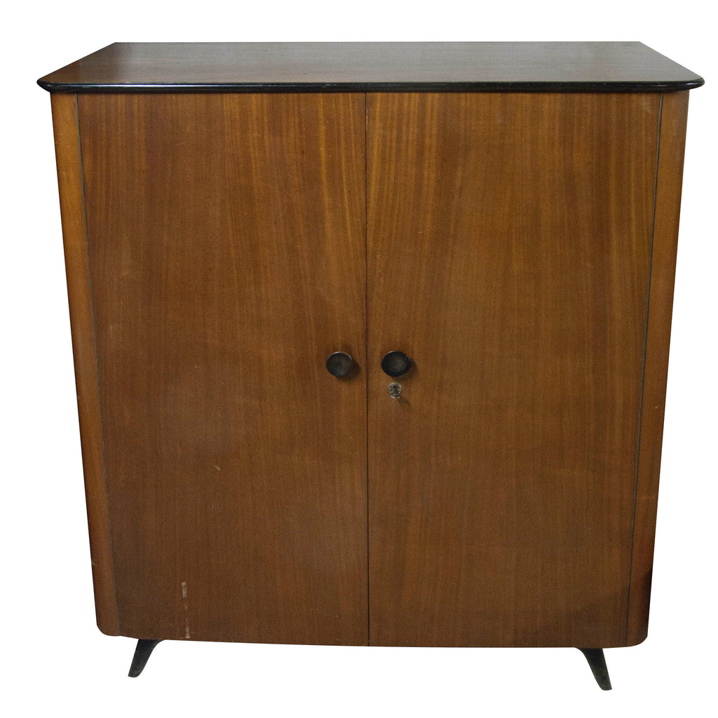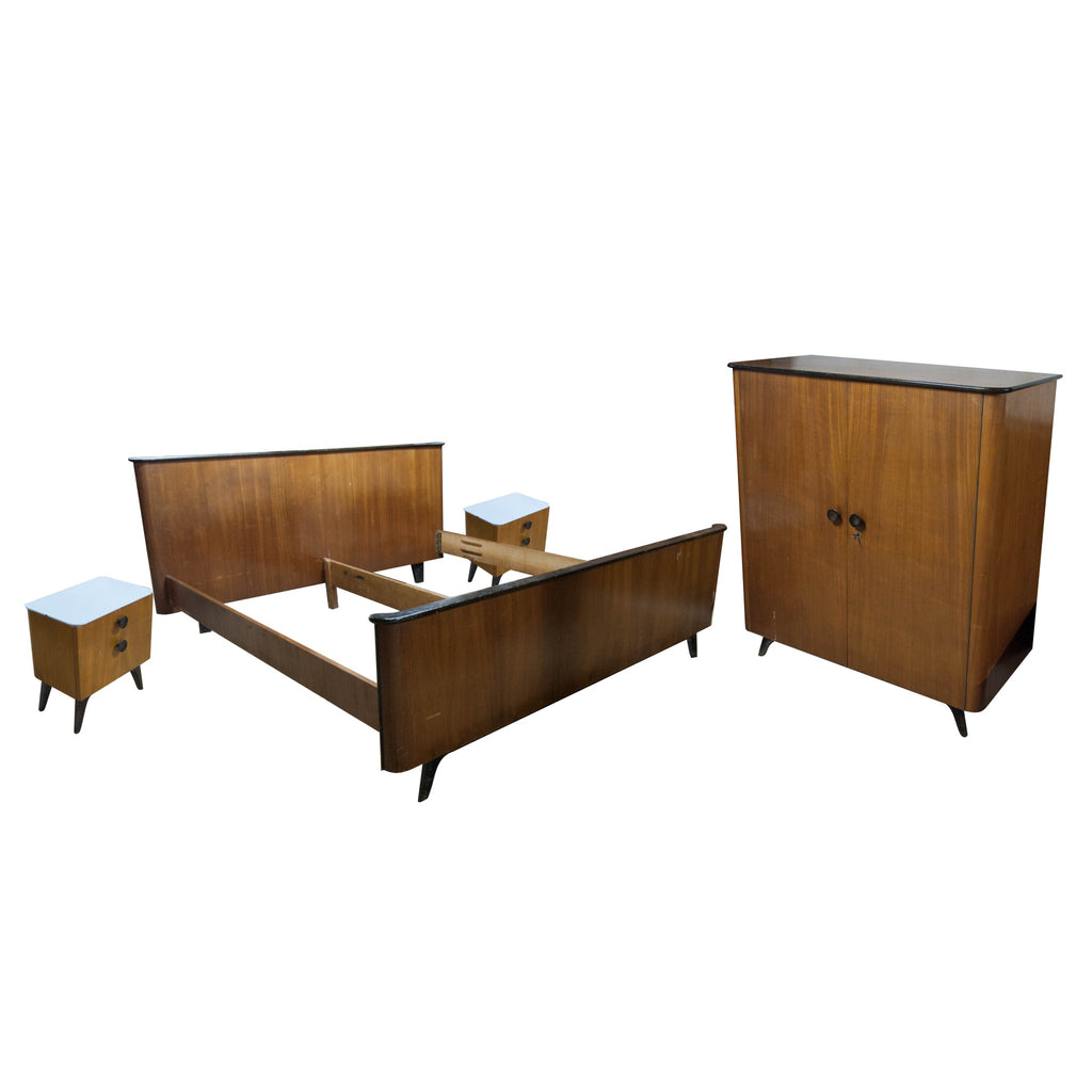 Elegant cabinet designed by Jindrich Halabala, Mid-Century. Inside three shelves. Black lacquered legs, handles and upper plate. In good condition. As part of bedroom. Other part of the bedrooms as a bed, night stands, wardrobe you will find among the our other offers.