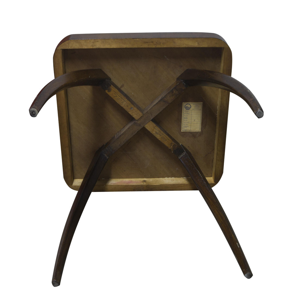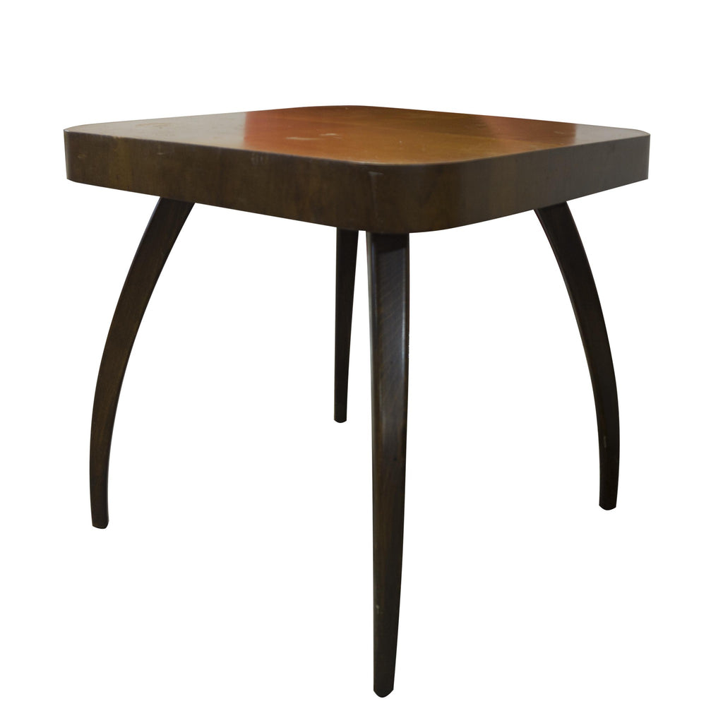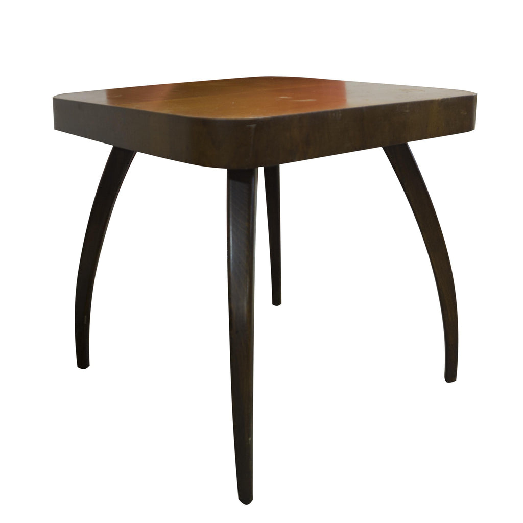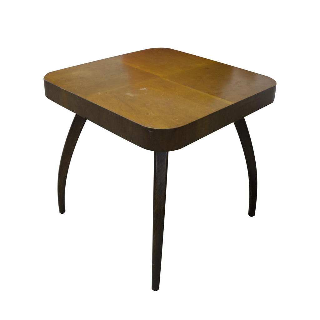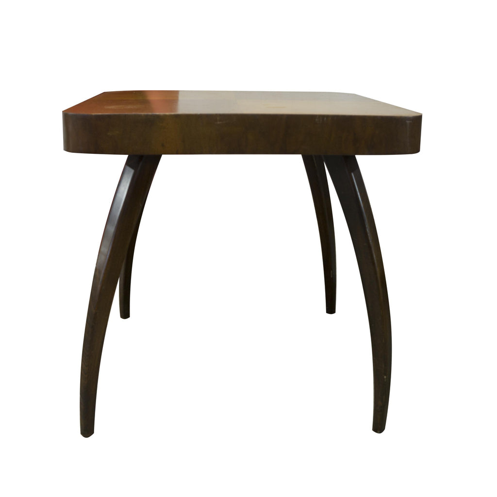 Square coffee table in the shape of spider designed by Jindřich Halabala, produced UP Závody, with distinctive curved legs, rounded corners. Walnut veneer. In very good Vintage condition.