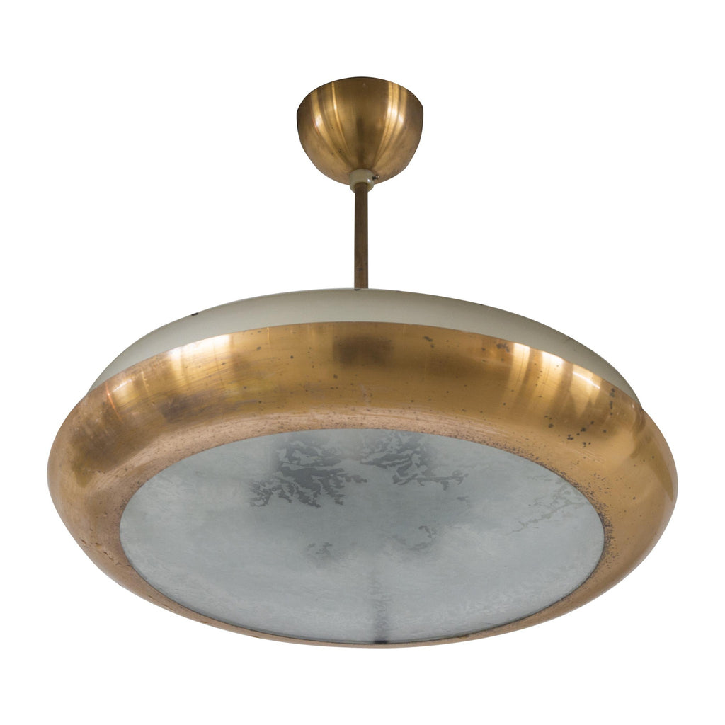 Bauhaus pendant "UFO" by Josef Hurka for Napako, 1930´s. Copper, opaline glass.