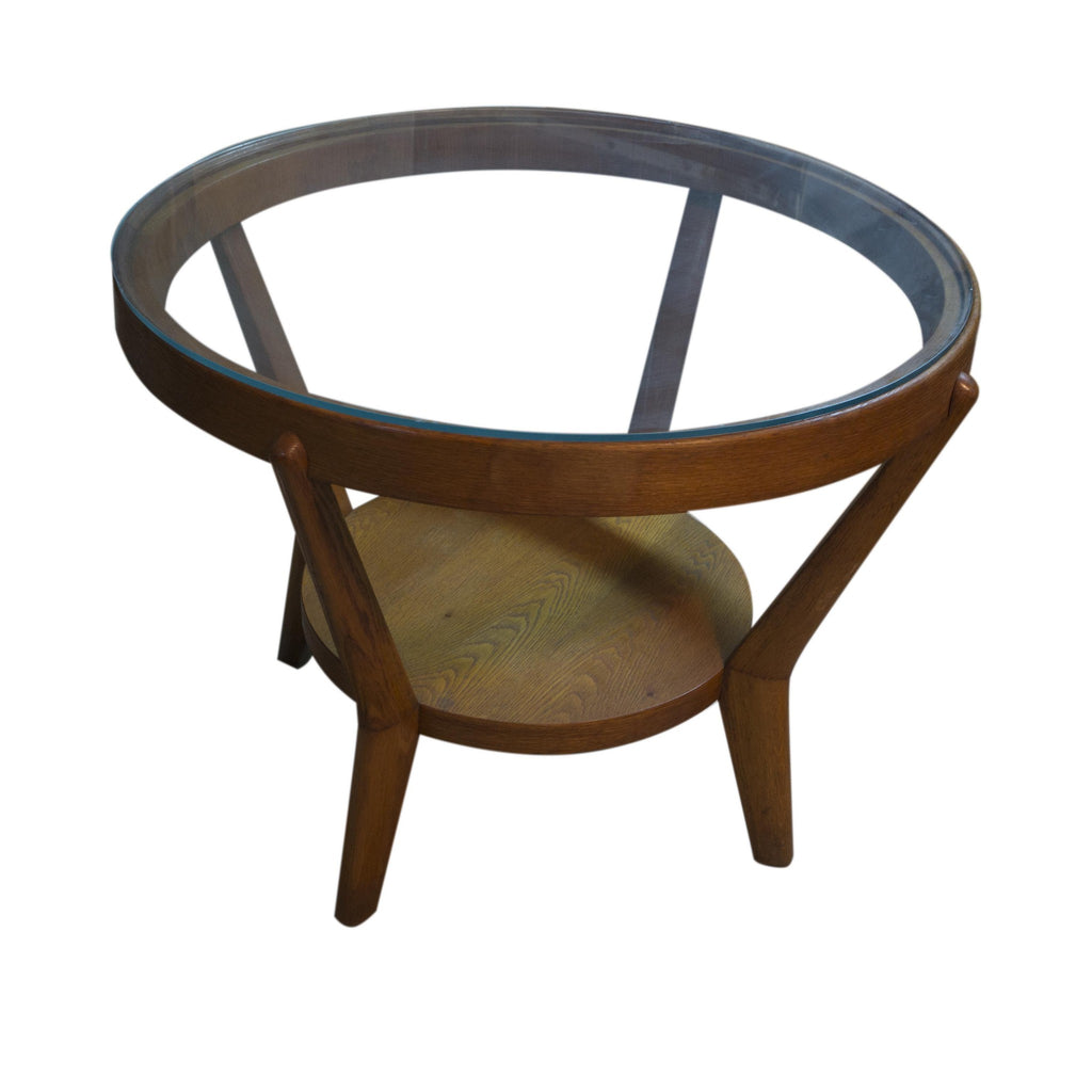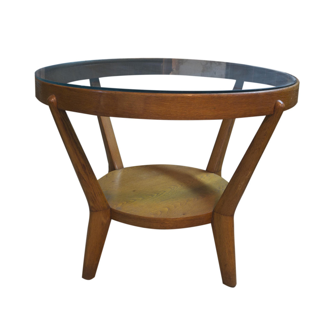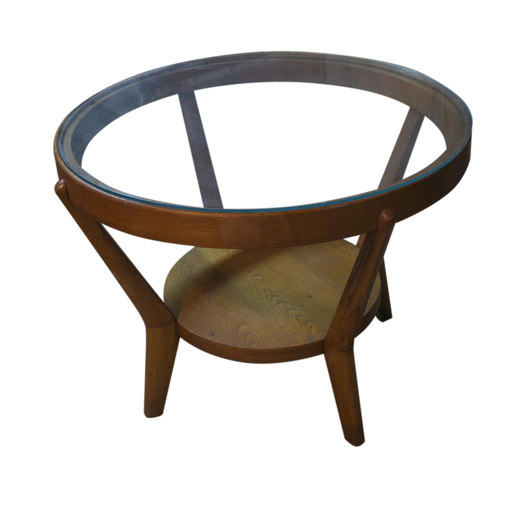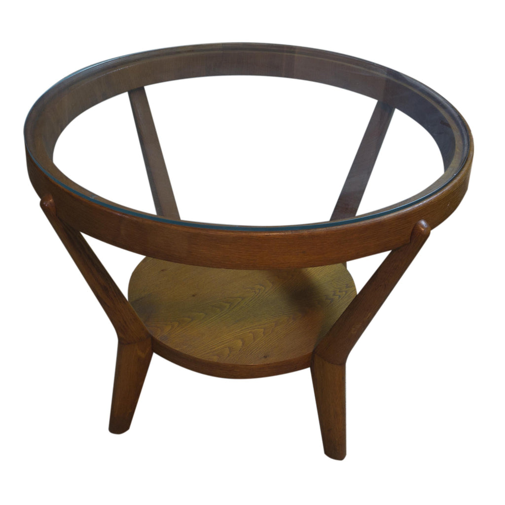Glazed round table designed by famous architects Kropacek & Kozelka in 1944. Czechoslovakia. It can use as a coffee or side table. Good condition. Solid oak. Light colour. In very good Vintage condition.