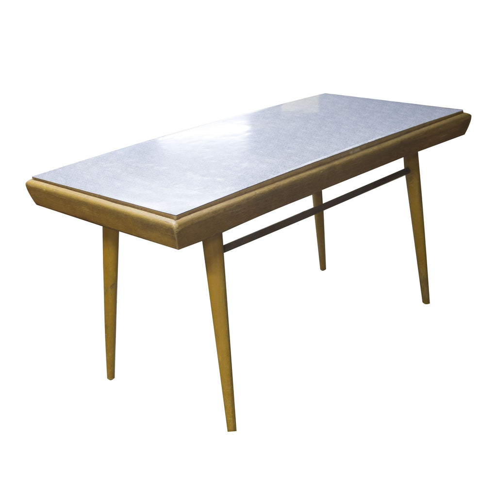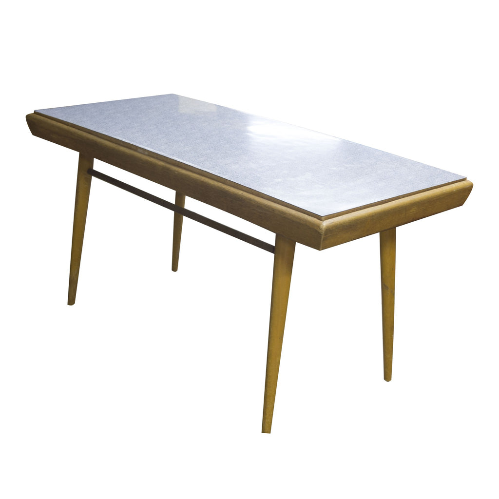 Mid century table with double plate (one side yelow and second side grey/white), formica surface, 1960´s. Associated with world-renowned exhibition EXPO 58 in Brussels. A design by uknown author. Beechwood. In very goo Vintage condition. Minor abrasions and scratches in the context of age and use.