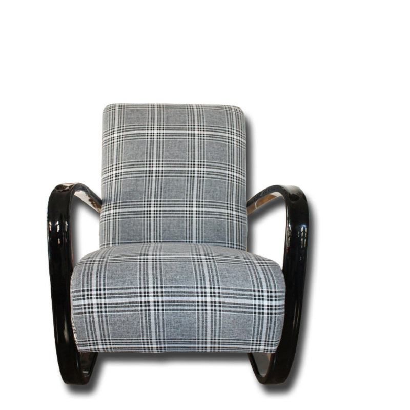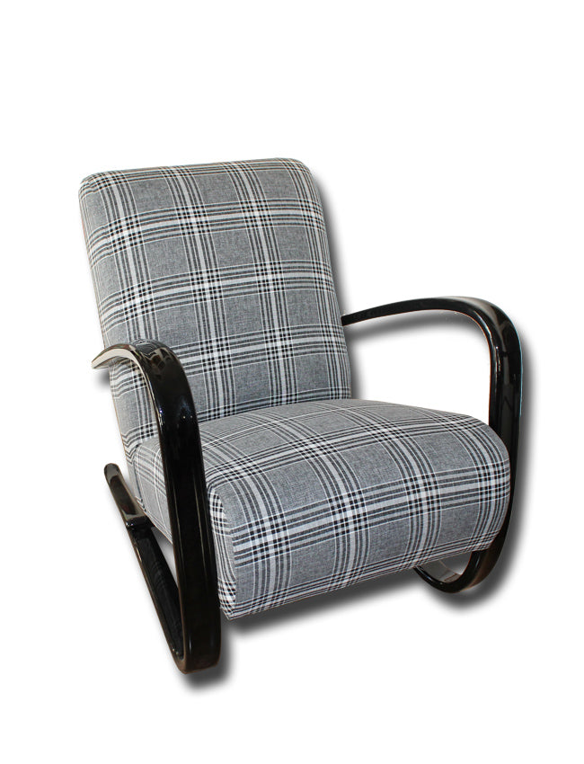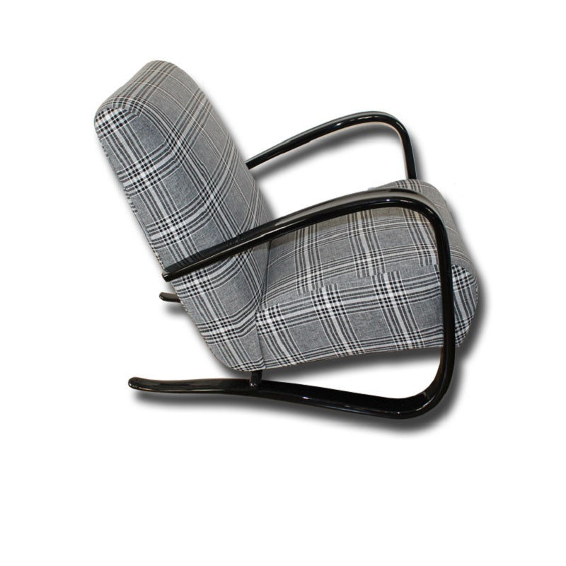Luxury Art Deco ebonized bentwood armchair by Jindřich Halabala, model H-269. Completely renovated. New upholstery. The wooden structure varnished with polyurethane. In case of interest, we are able to provide another chair exactly the same to make a pair.