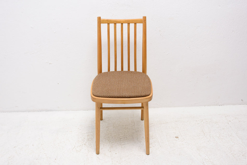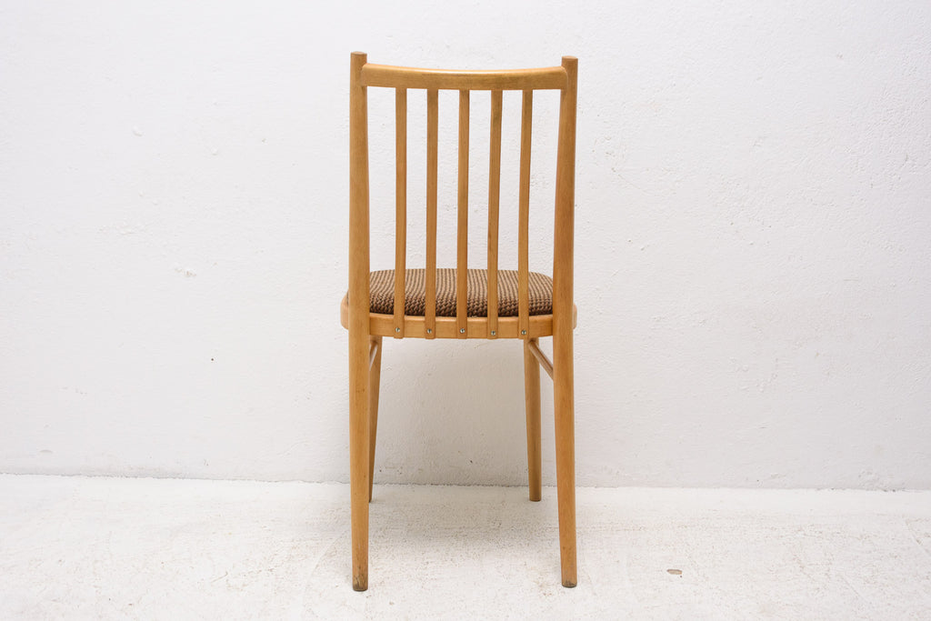 Pair of mid century upholstered dining chairs, made by Tatra nábytok in the former Czechoslovakia in the 1960´s. Beech wood, fabric. In good Vintage condition, without any damage, showing signs of age and using. Price is for the pair.