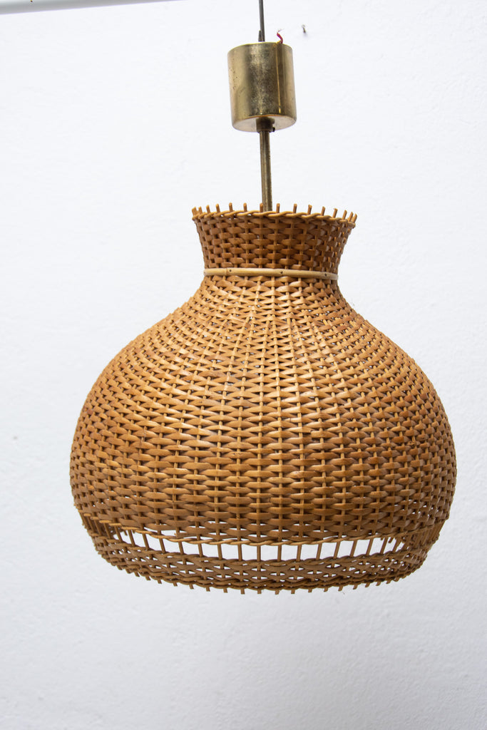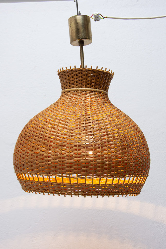 Mid century wicker hanging chandelier by ULUV, 1960s