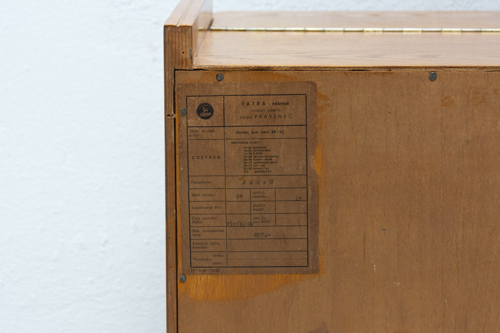 Mid century Vintage small cabinet or TV table from the 1960´s. It was designed by Frantisek Jirák and was manufactured by Tatra nábytok company in the former Czechoslovakia. Walnut veneer, plywood. In good condition.