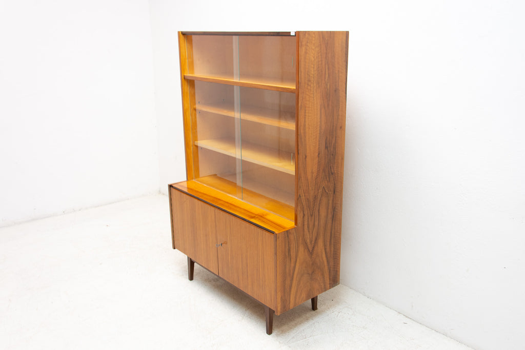 Mid century Vintage bookcase from the 1960´s. It was produced by Interiér Praha in the former Czechoslovakia. Features a simple design. In good Vintage condition, shows slight signs of age and using. Plywood, walnut veneer.Height: 150 cm width: 100 cm depth: 46 cm