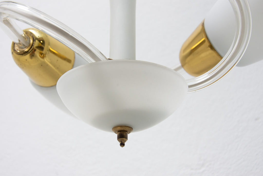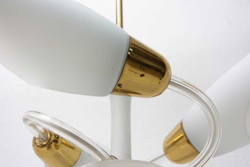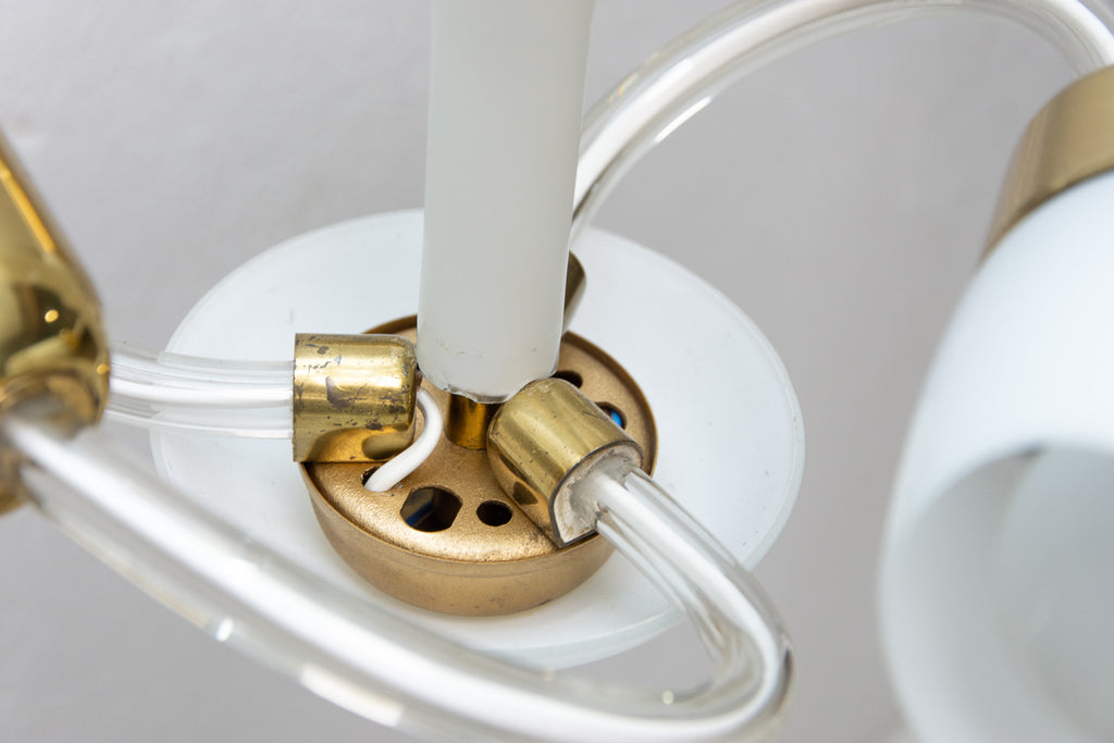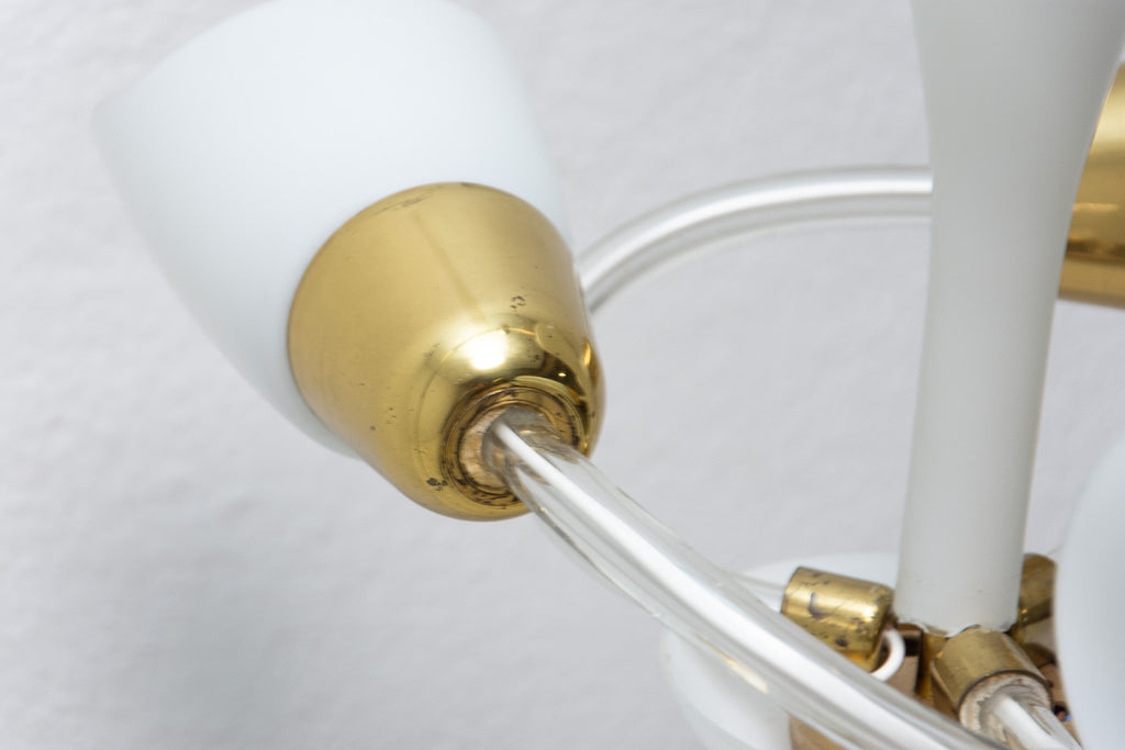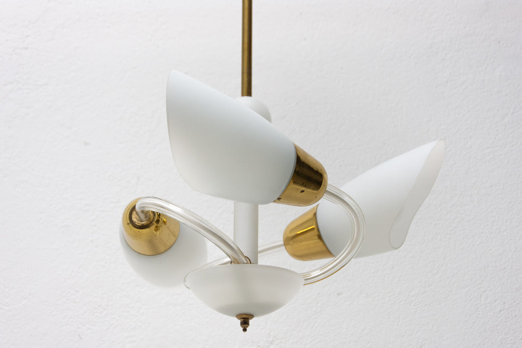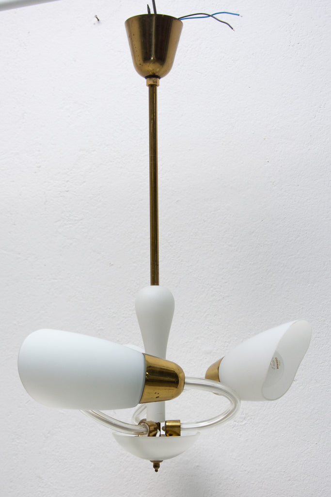 Mid century brass and glass pendant lamp in the shape of the bloom, it was made in Czechoslovakia in the 1960´s. In very good condition, new wiring.
