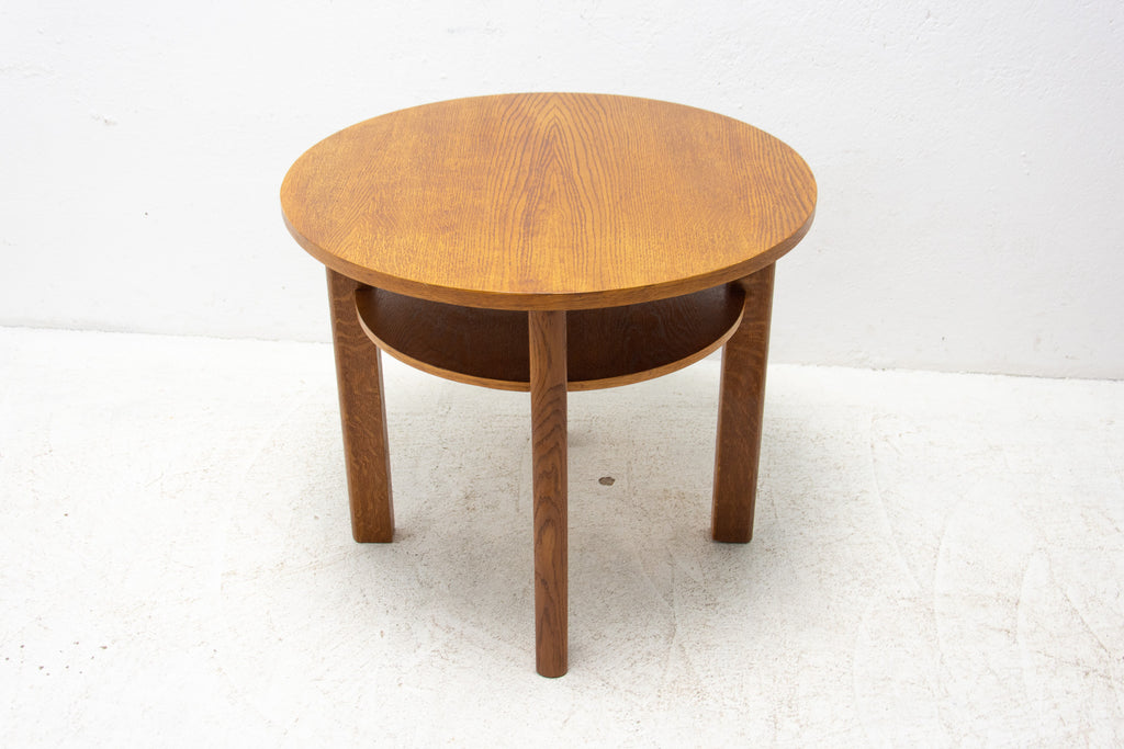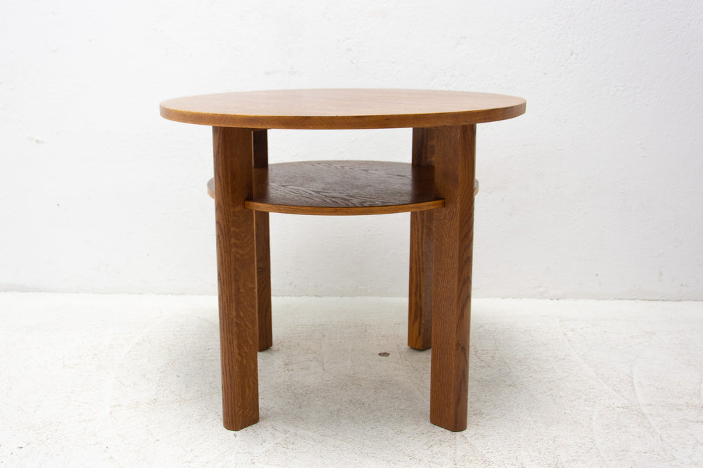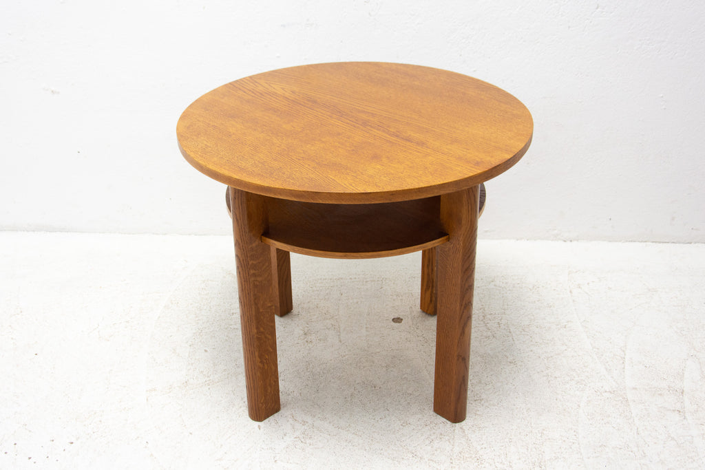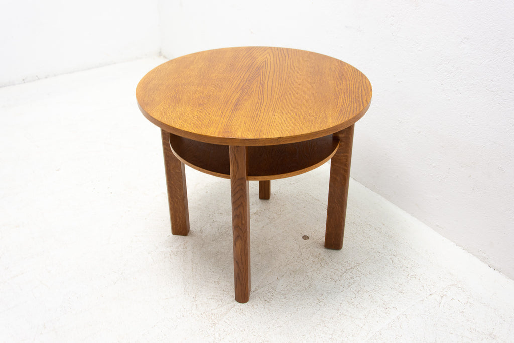 Round occasional midcentury table in oak, made in the former Czechoslovakia in the 1950´s.
