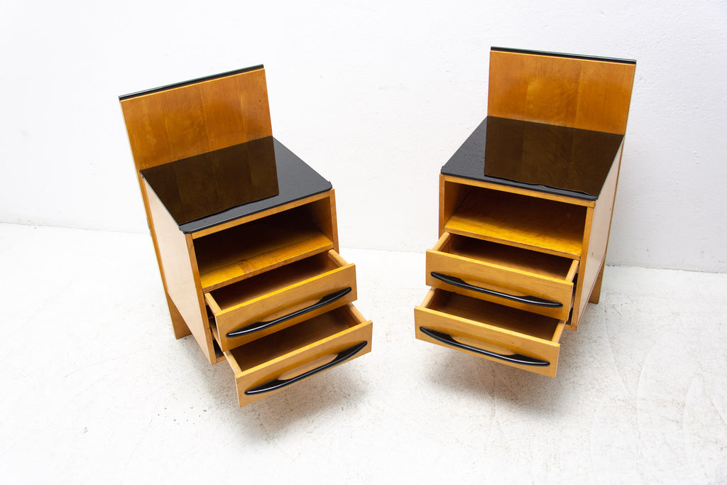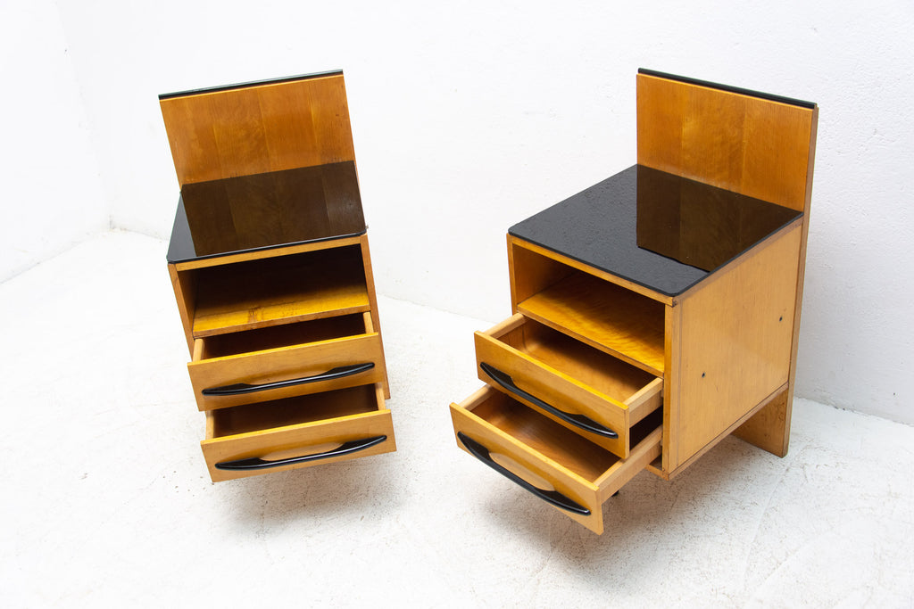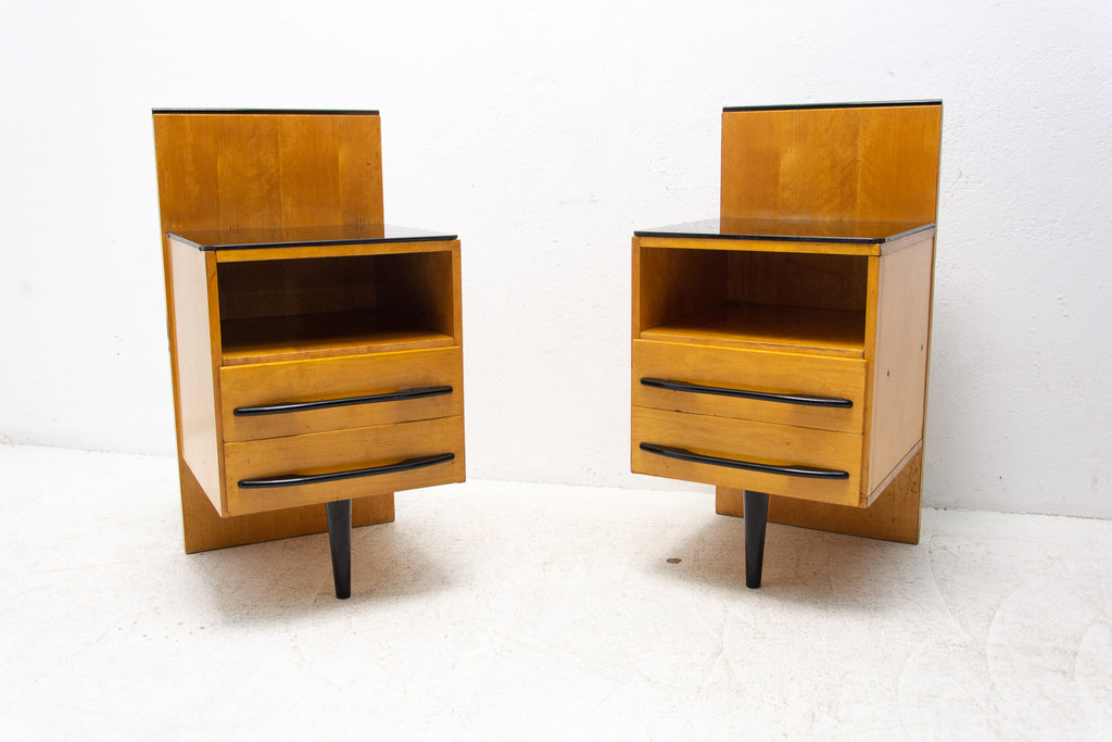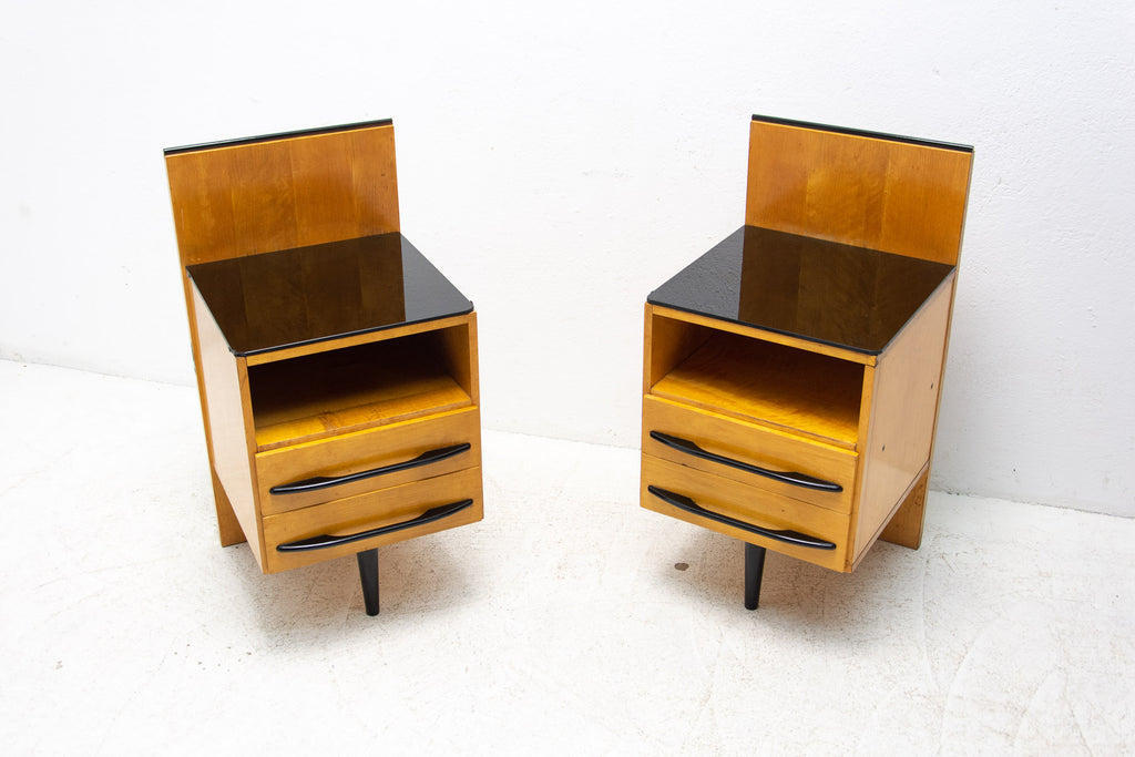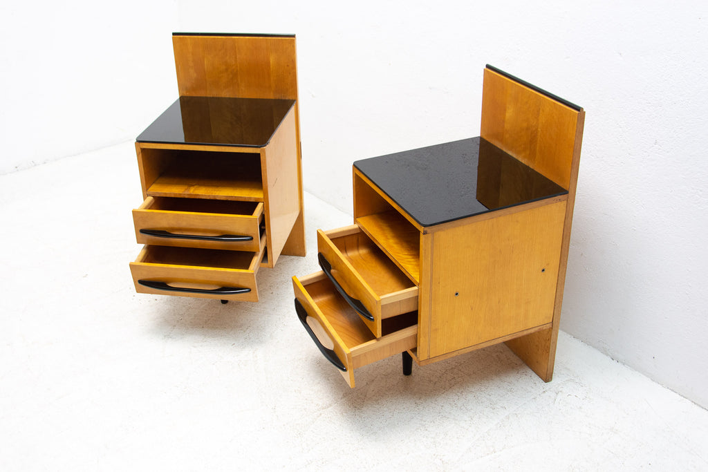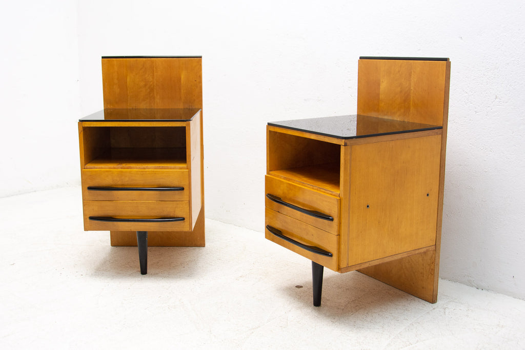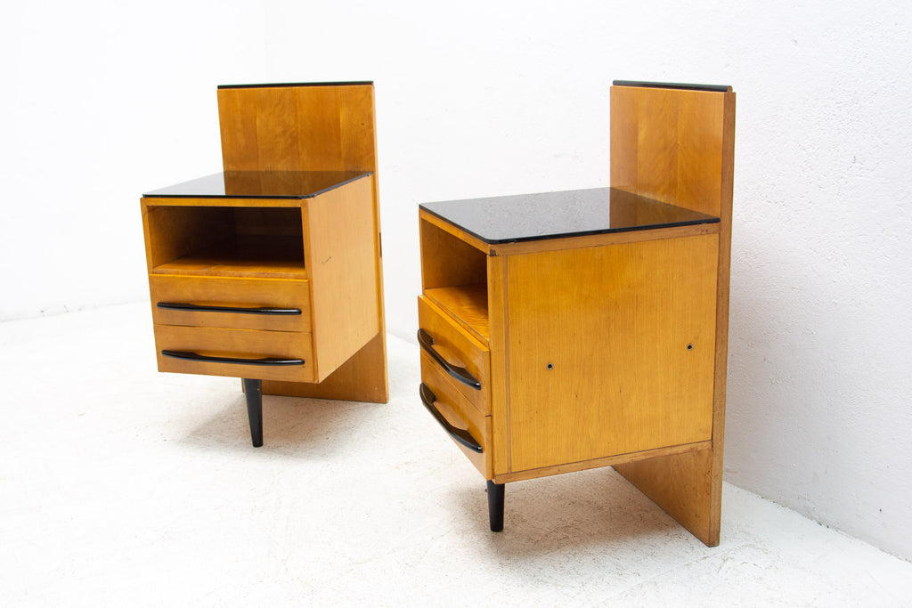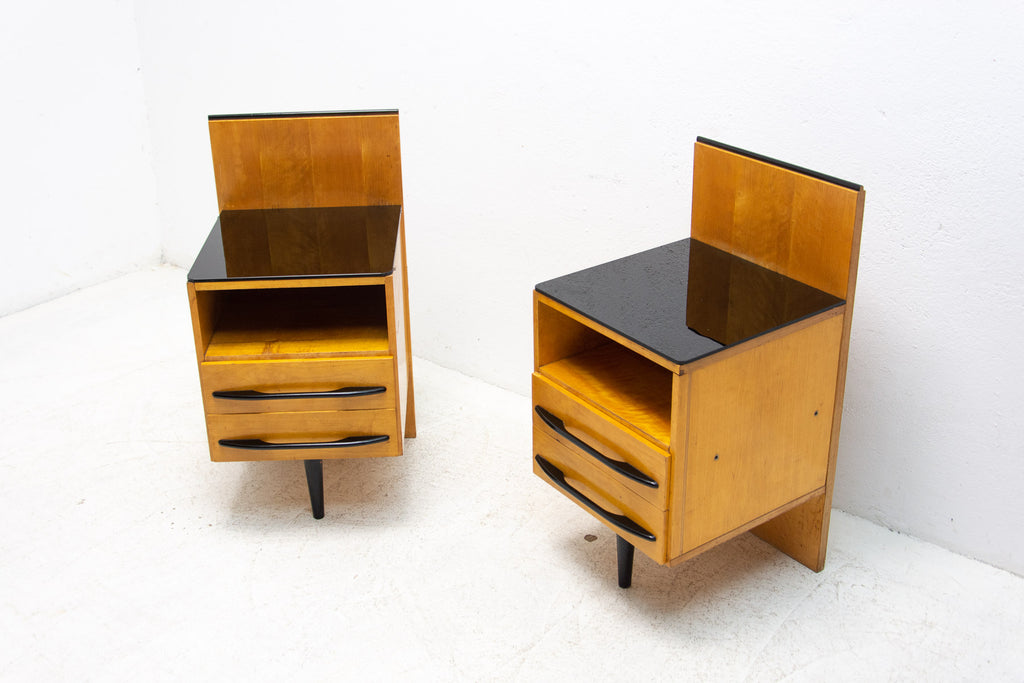 This midcentury nightstand/bedside table was designed by Mojmír Požár for UP Závody and made in the former Czechoslovakia in the 1960´s. Made of ash wood and black glass.