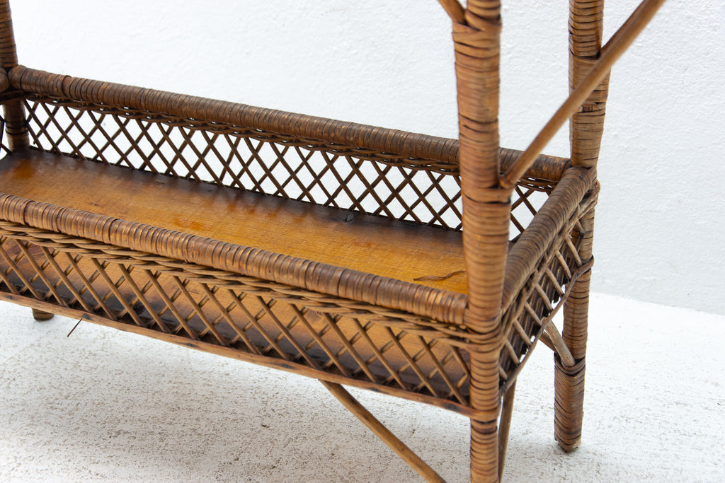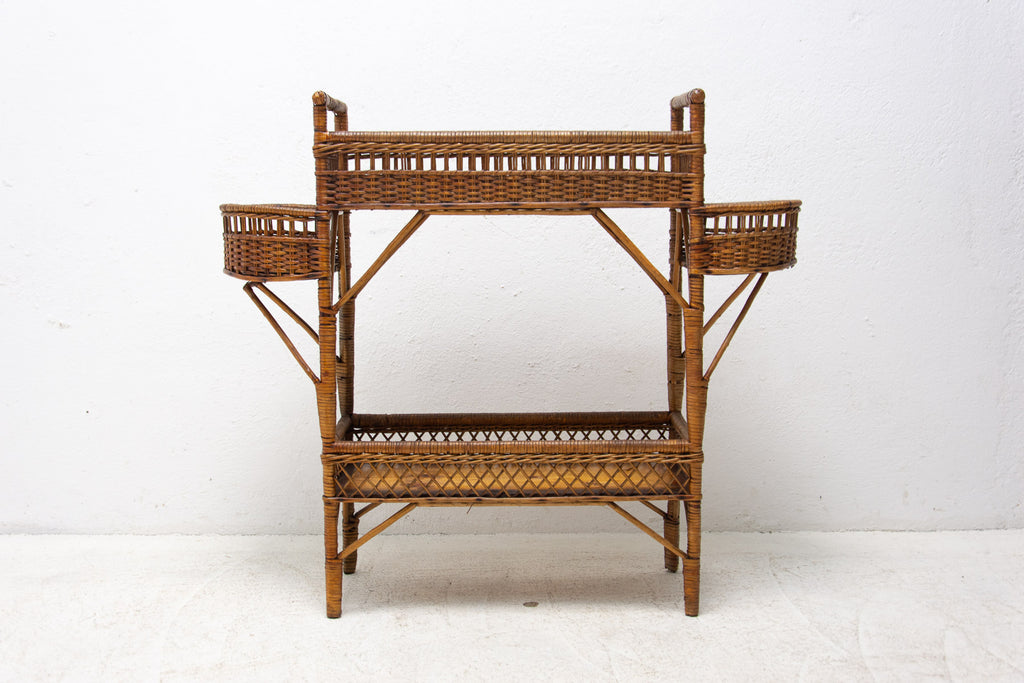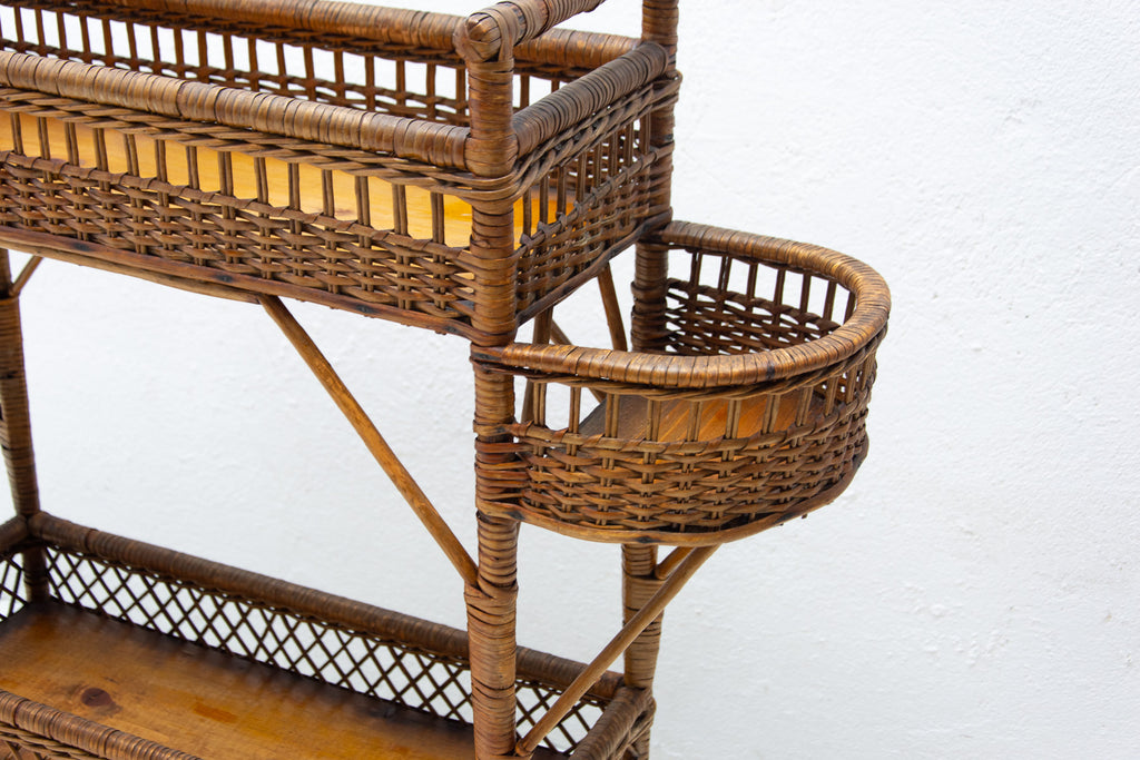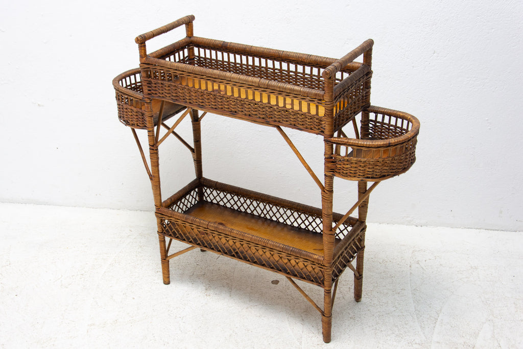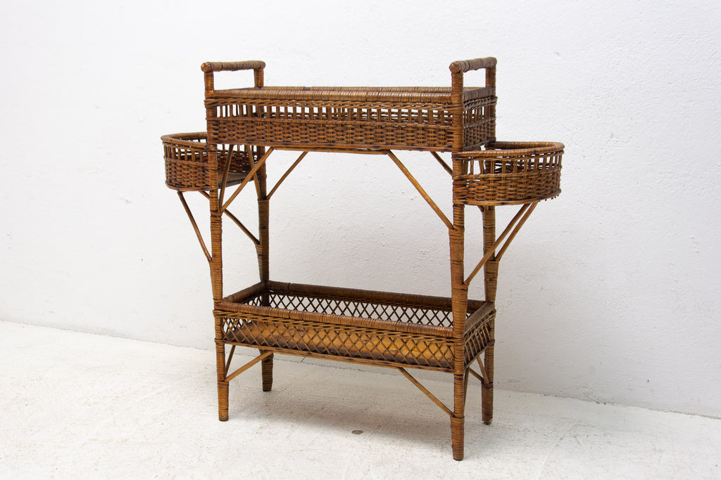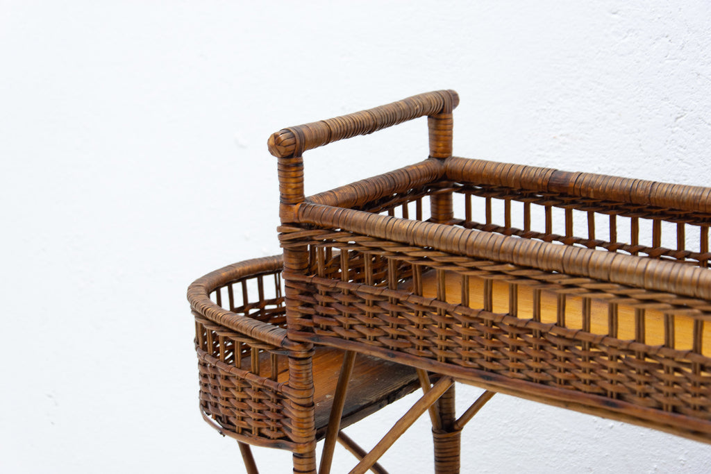 Mid century wicker and beech plant stand, 1960s, Central Europe
