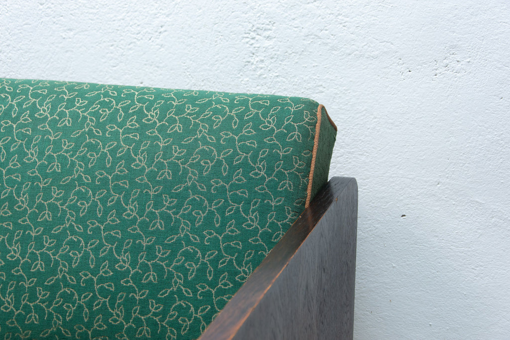 This midcentury folding sofabed with storage space was designed by the famous Czechoslovak architect Jindřich Halabala in the 1950´s. Very attractive and simple design. The construction is of beech wood. Overall in good Vintage condition, showing signs of age and using. Upholstery is in original preserved condition.