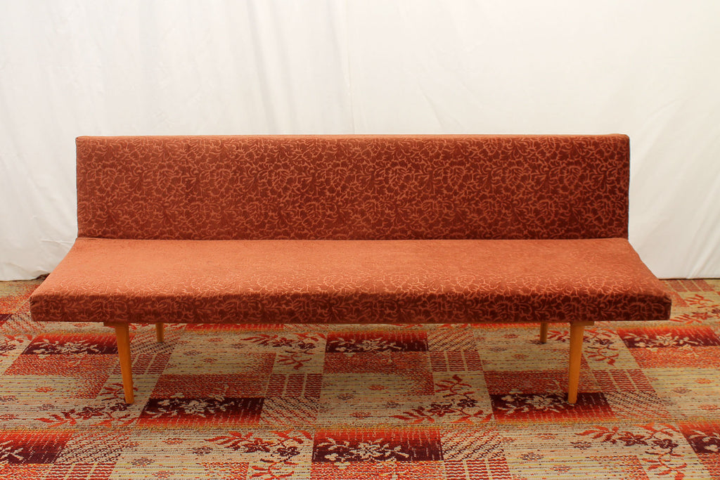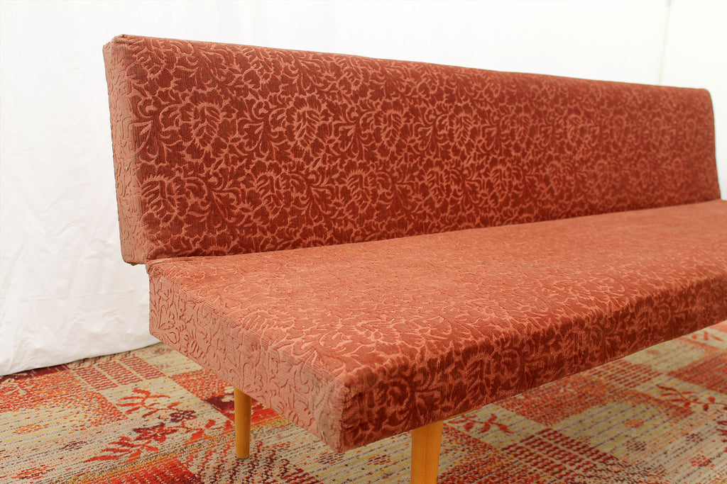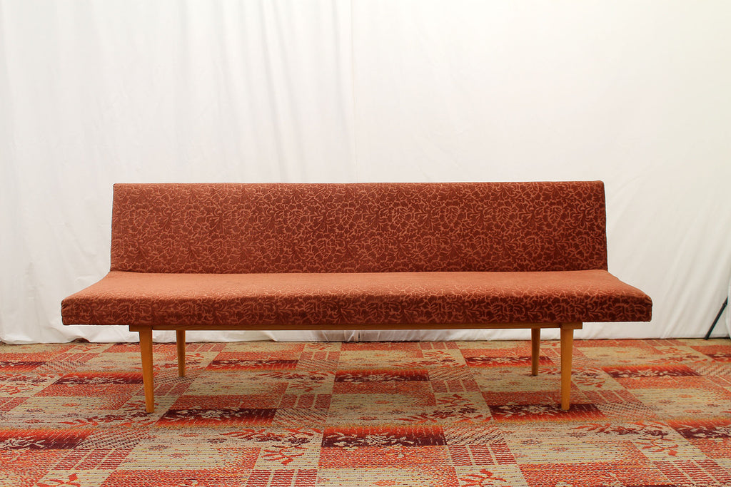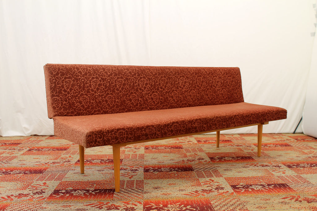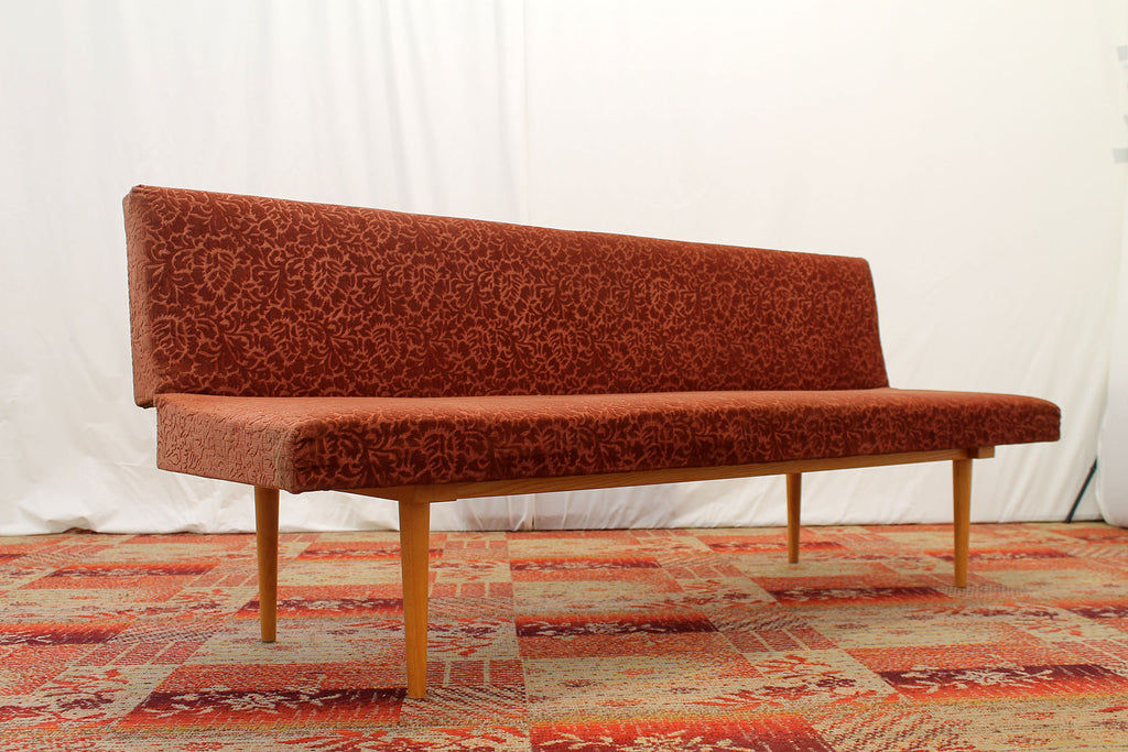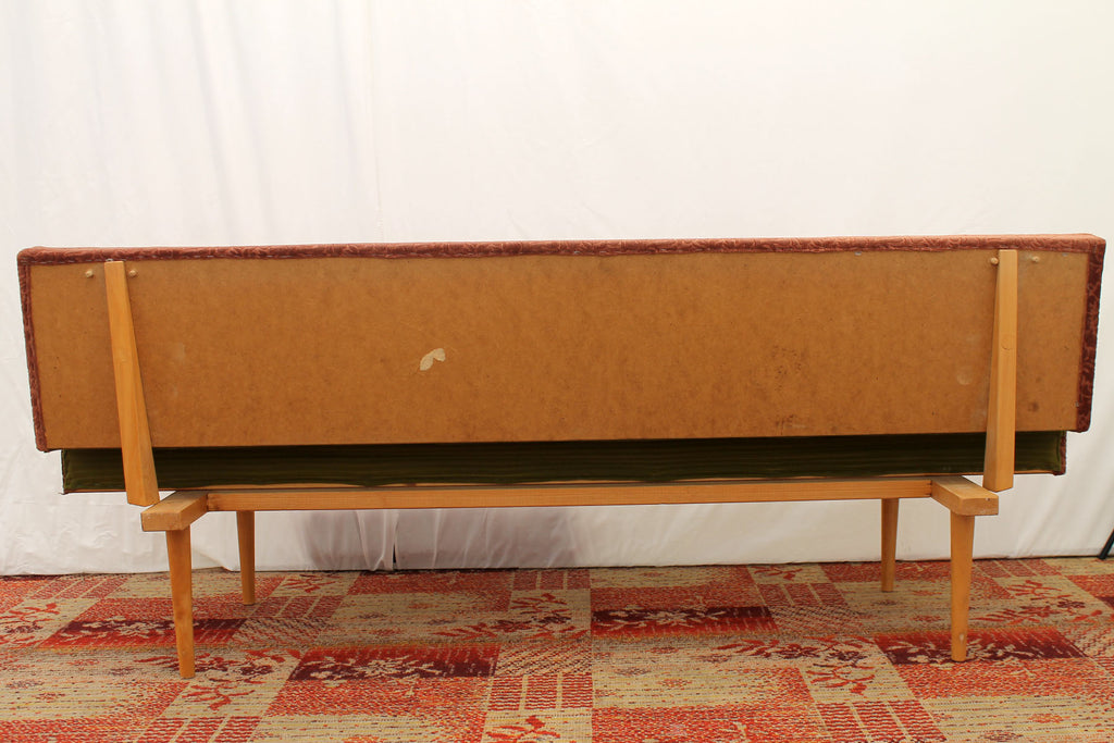 Midcentury sofa/daybed, made in the former Czechoslovakia in the 1960s, designed by Miroslav Navrátil. Material: beechwood, fabric. The sofa is in well preserved Vintage condition, showing slight signs of age and using.