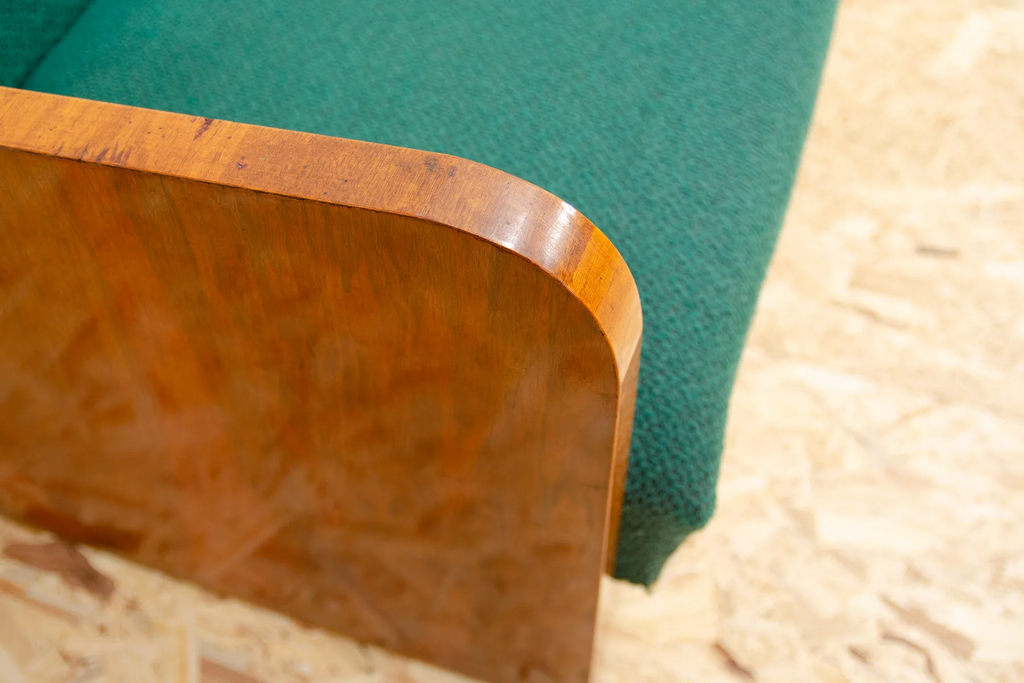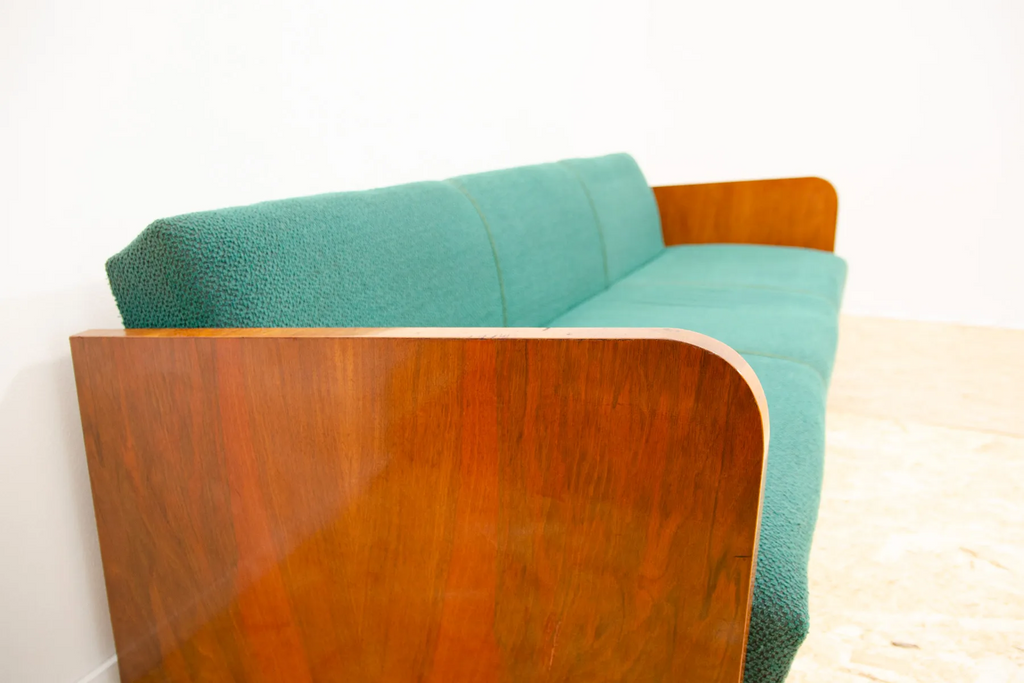 This mid century couch/sofabed, made in the former Czechoslovakia in the 1960´s. Material: beech wood, fabric. The sofa is in very good Vintage condition, shows signs of age and using.