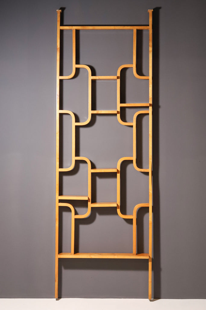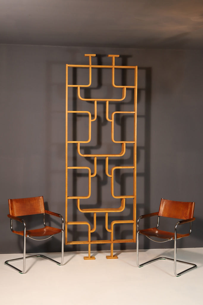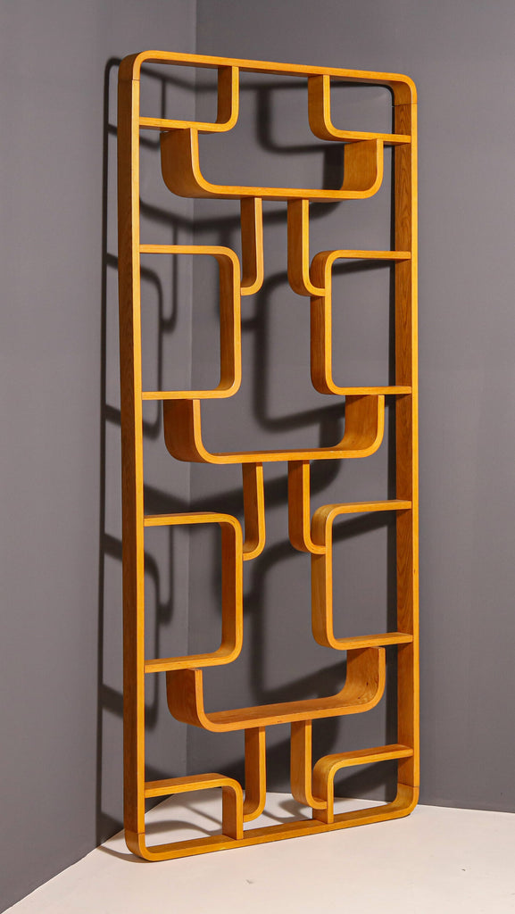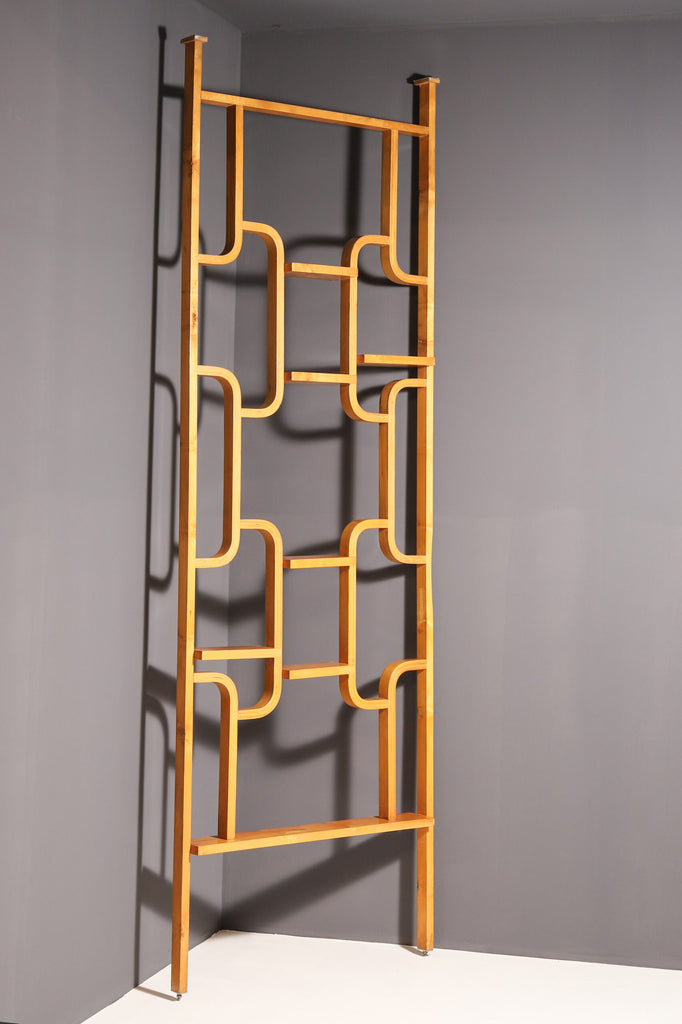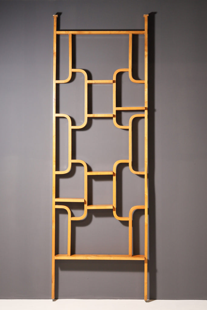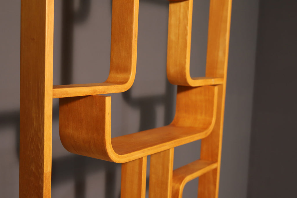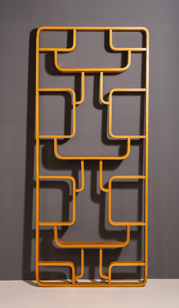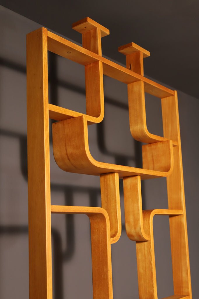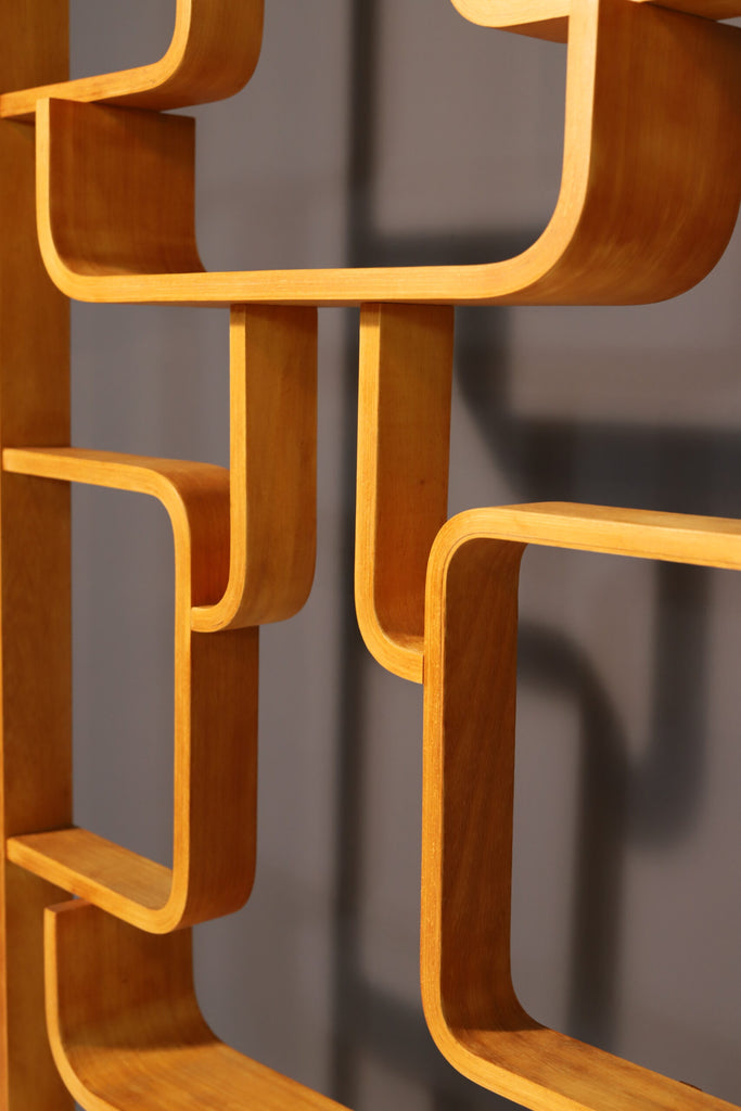 A mid-century bent plywood divider (claustra) from the 1970s, made in former Czechoslovakia. Crafted from beech bent plywood and featuring striking geometric cut-out patterns, this piece adds both function and sculptural interest to an interior.