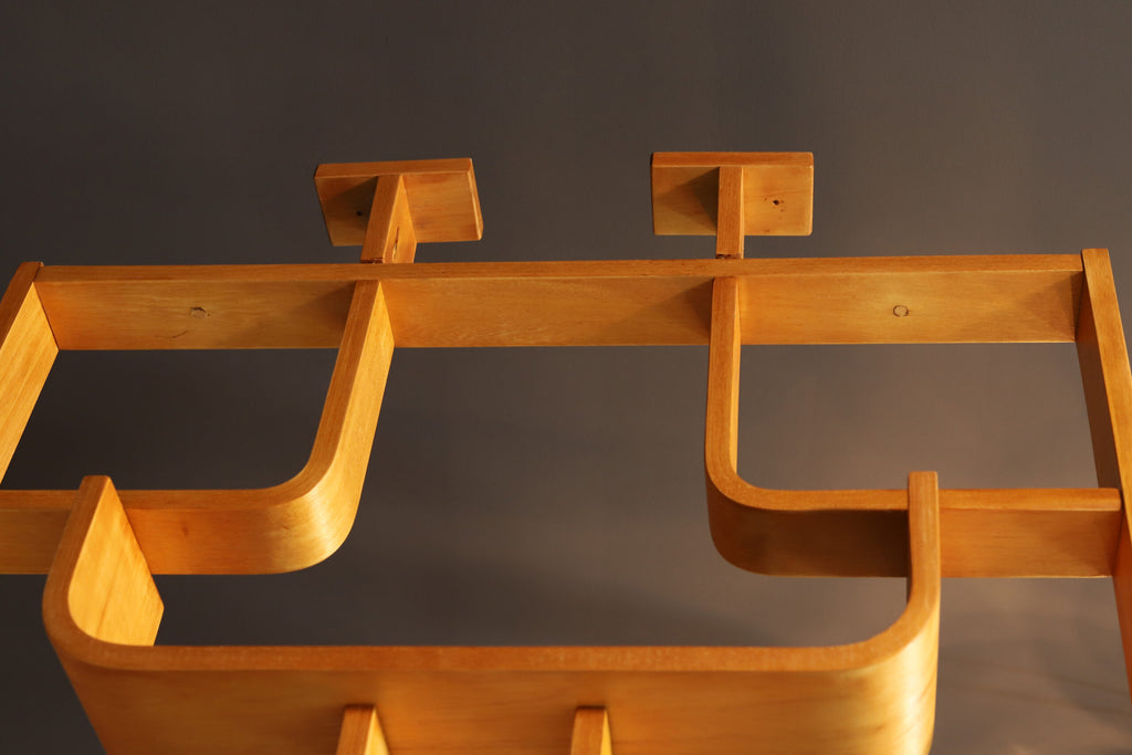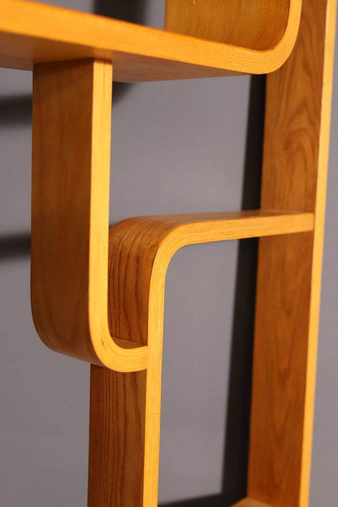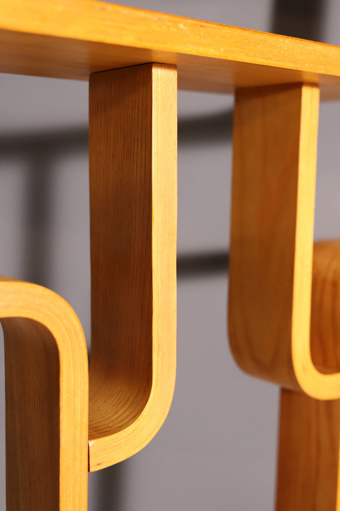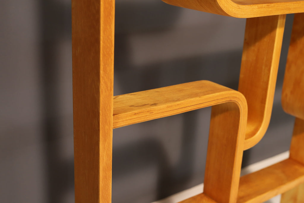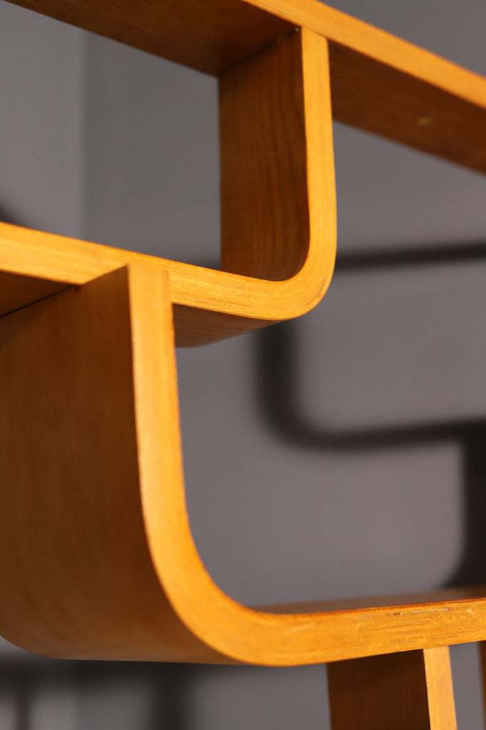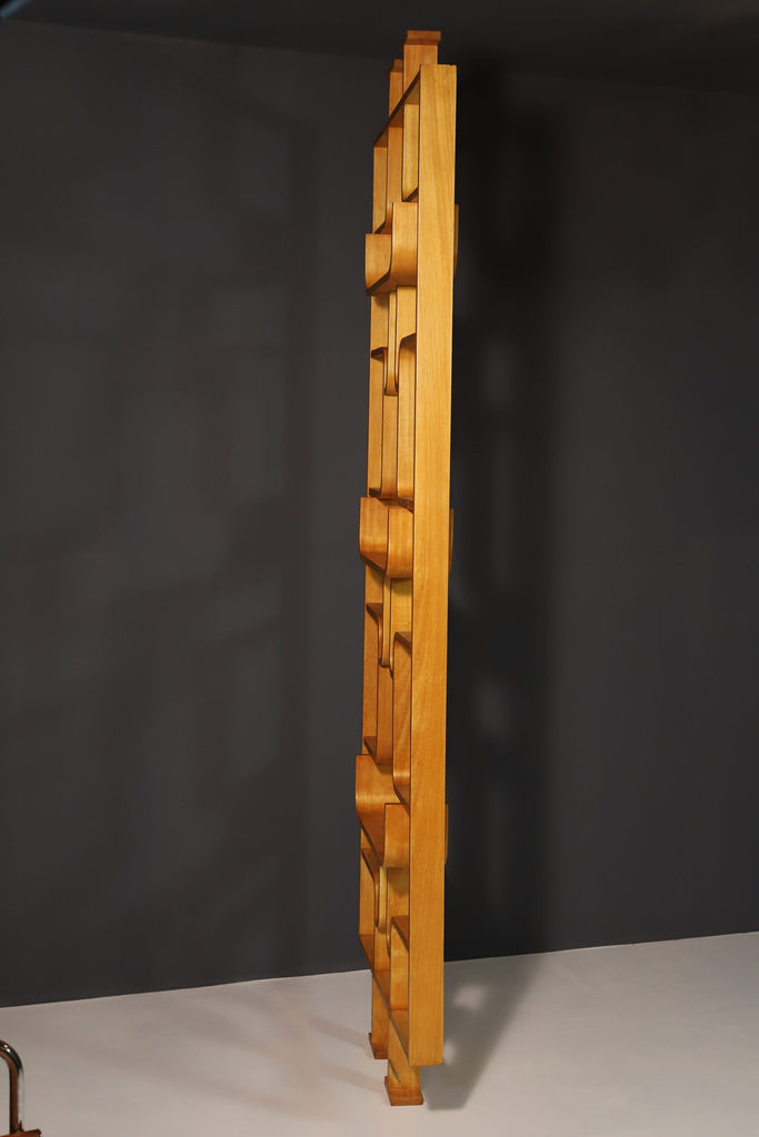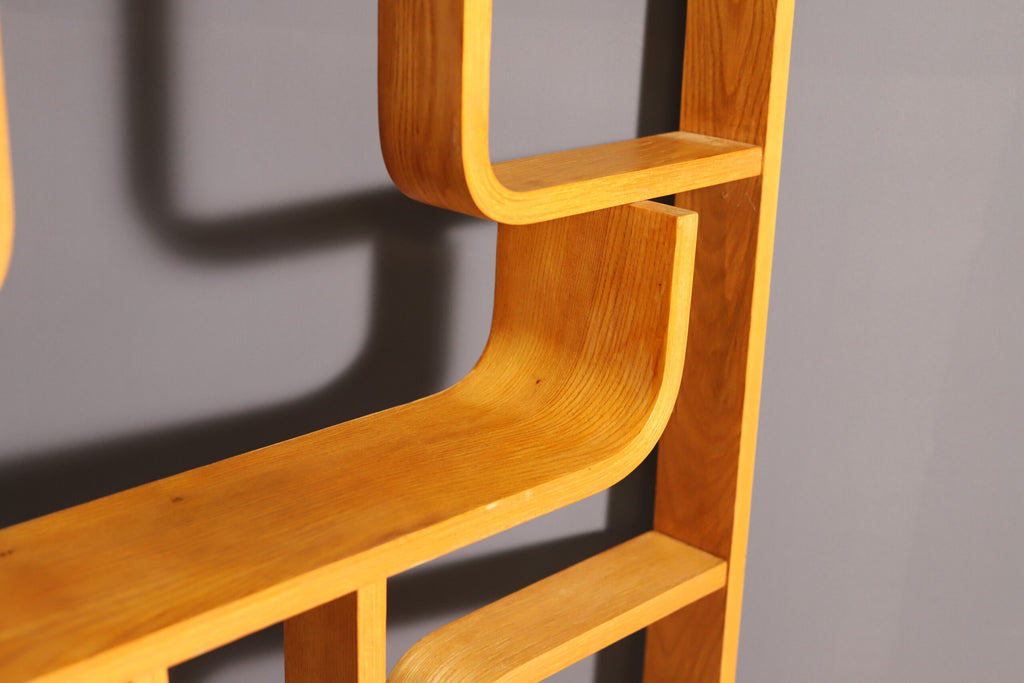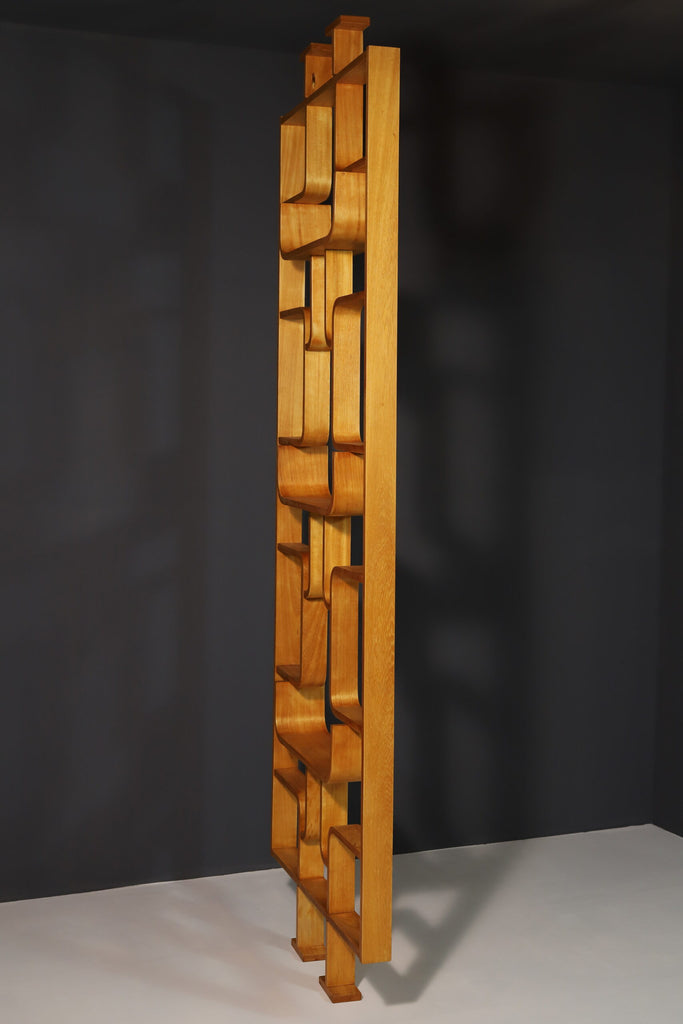 A mid-century bent plywood divider (claustra) from the 1970s, made in former Czechoslovakia. Crafted from beech bent plywood and featuring striking geometric cut-out patterns, this piece adds both function and sculptural interest to an interior.