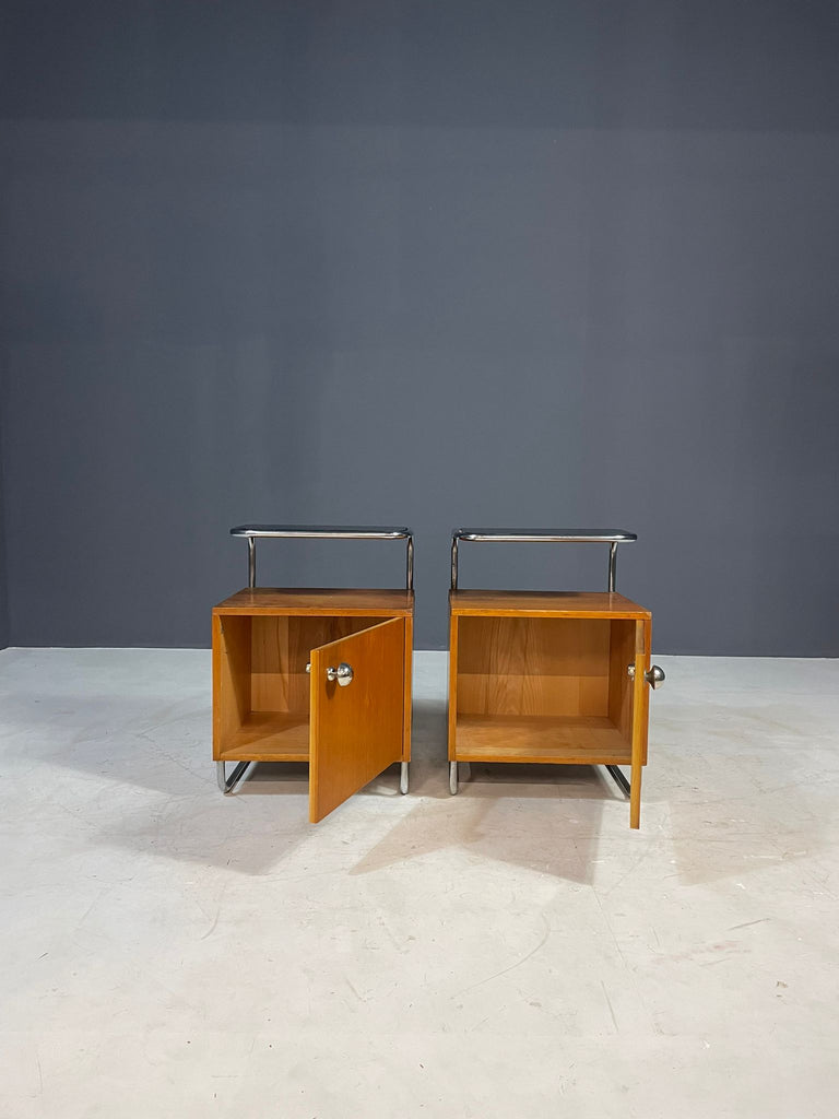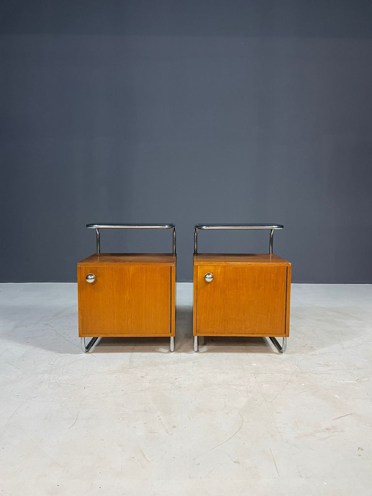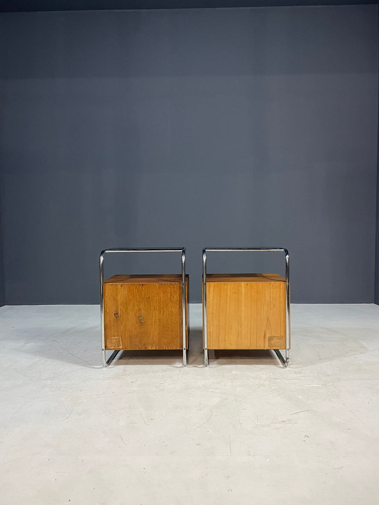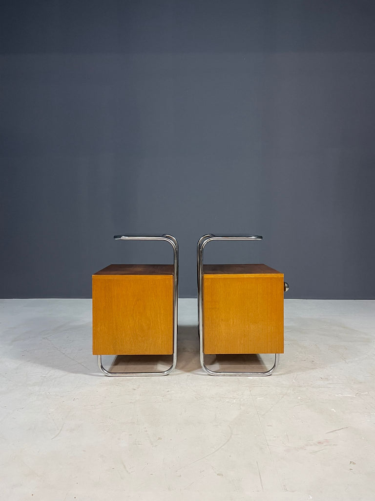 Bauhaus Bedside Tables, 1930s, Chrome and Wood, Czechoslovakia