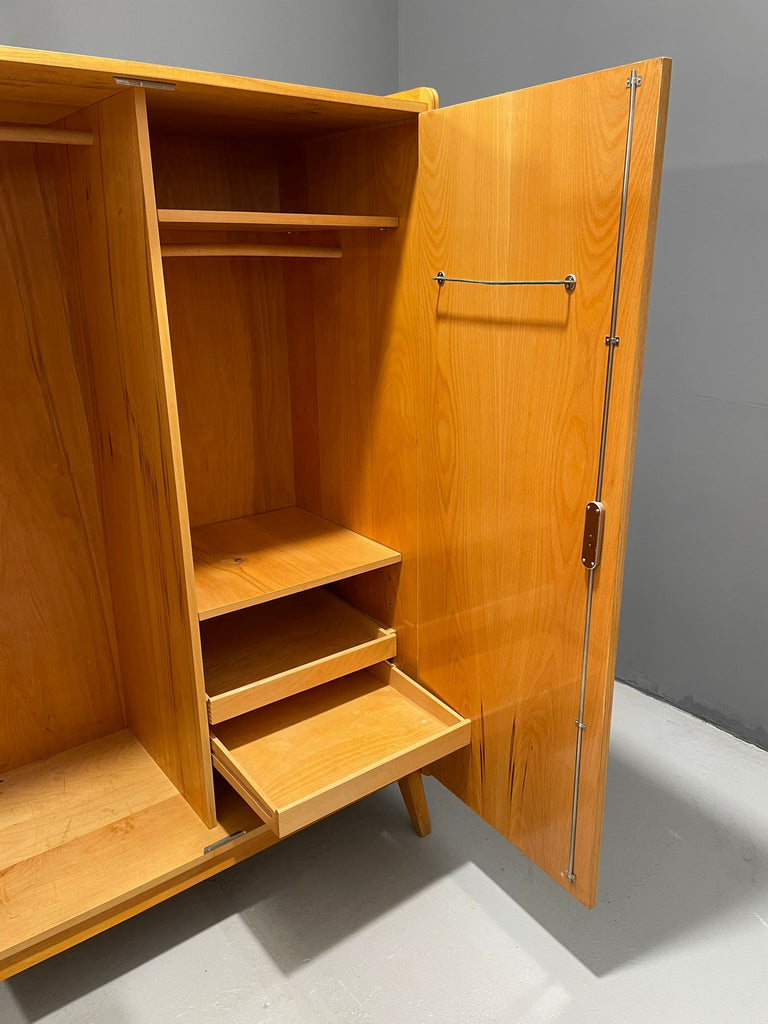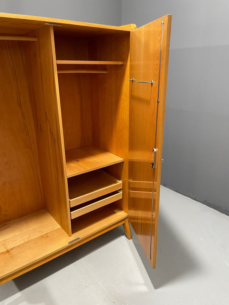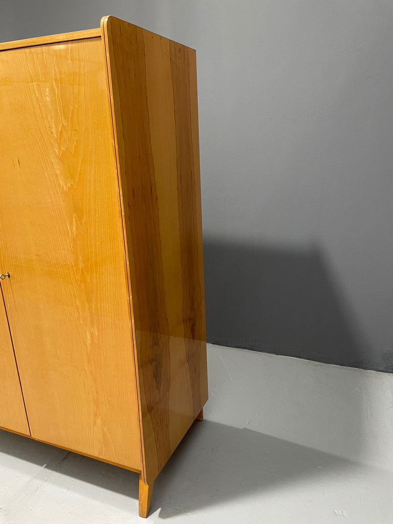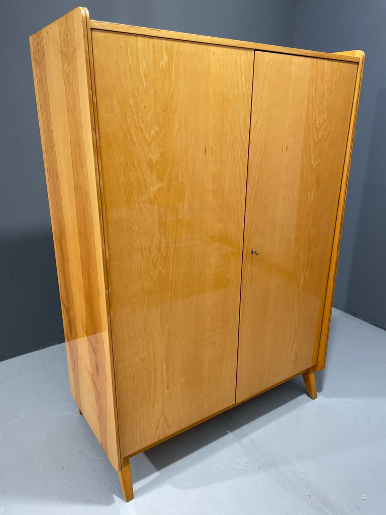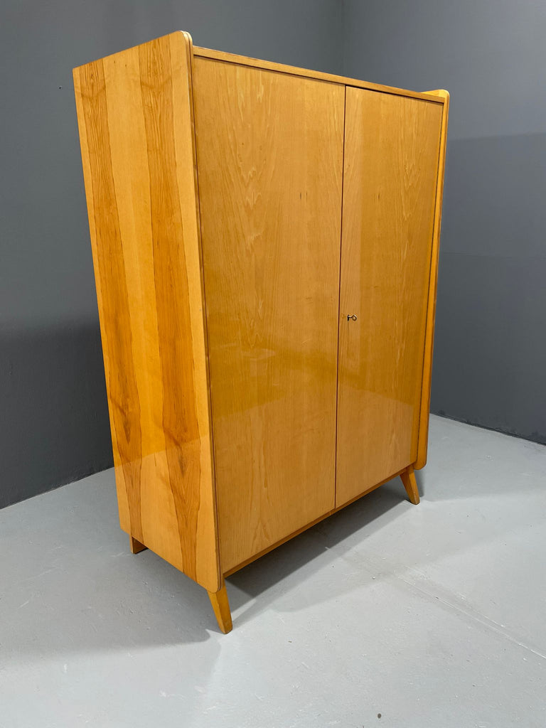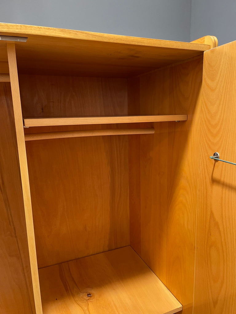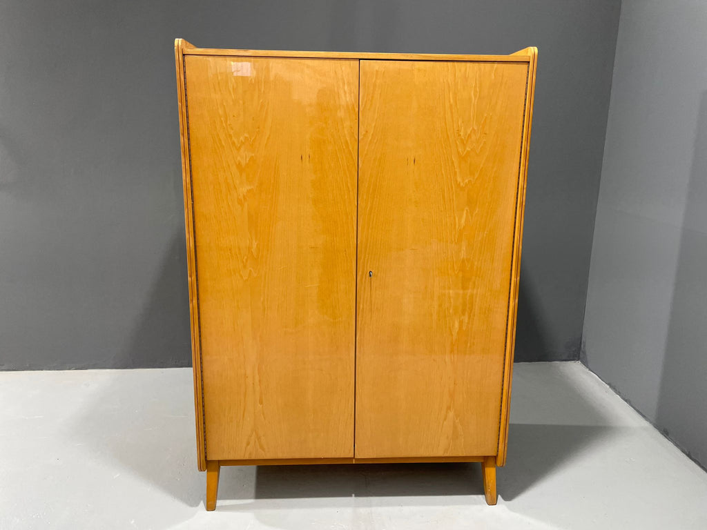 This vintage two-door wardrobe was produced by Tatra Nábytok in the former Czechoslovakia in 1960. It is part of a broader line of furniture rooted in Art Deco influence, typical of Central European cabinetmaking of the mid-20th century.