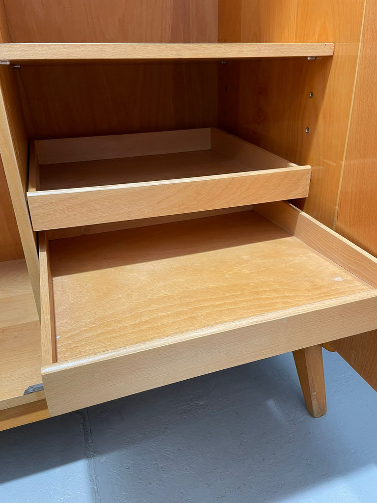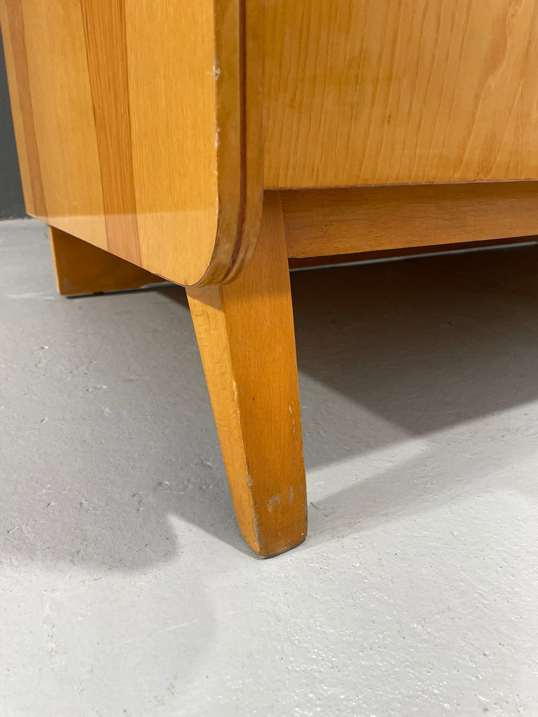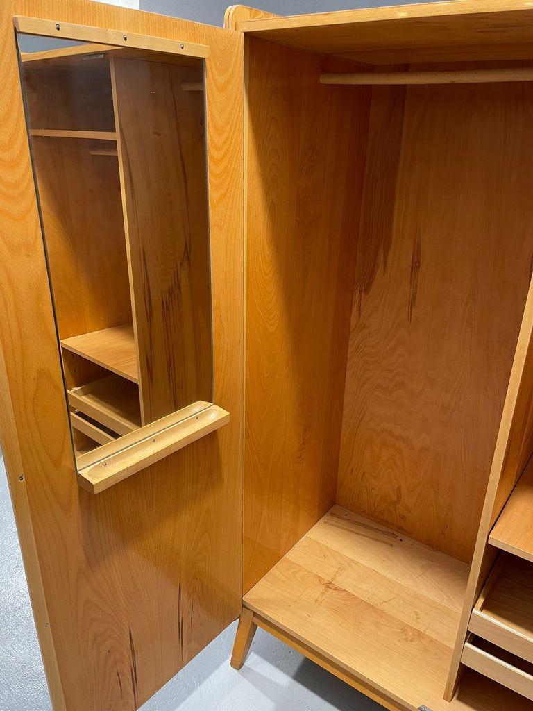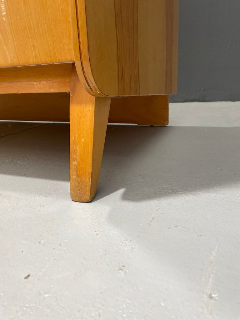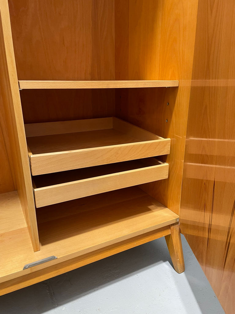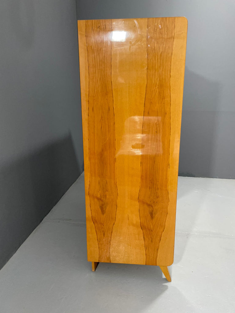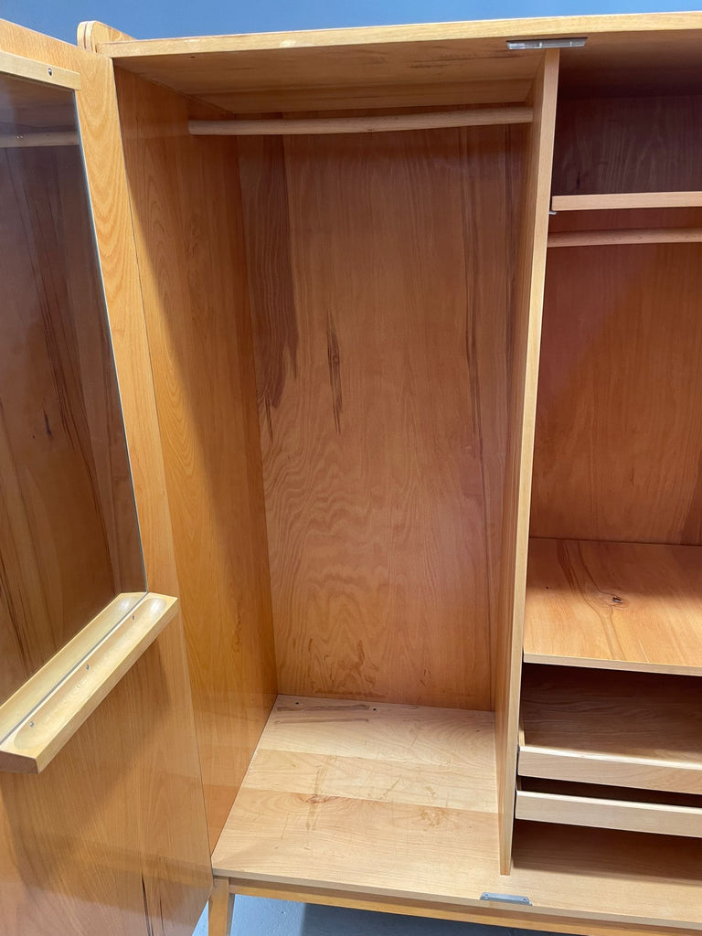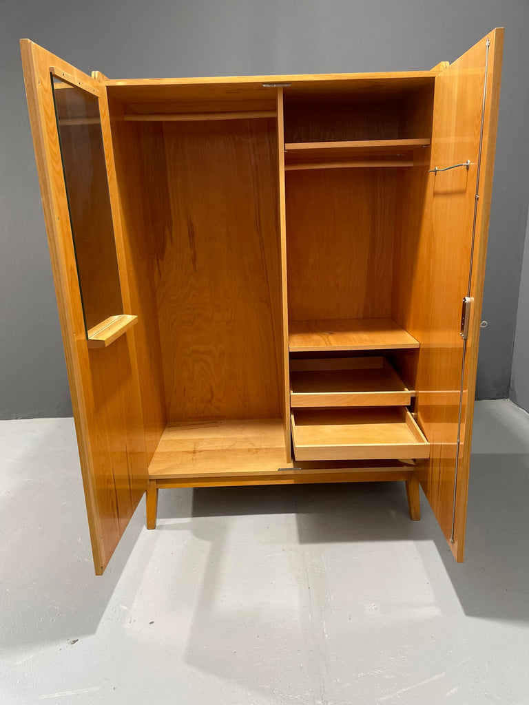 This vintage two-door wardrobe was produced by Tatra Nábytok in the former Czechoslovakia in 1960. It is part of a broader line of furniture rooted in Art Deco influence, typical of Central European cabinetmaking of the mid-20th century.