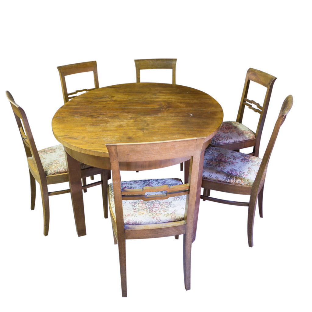Extendable dining table ART DECO with 6 chairs, circa 1930s, Europe