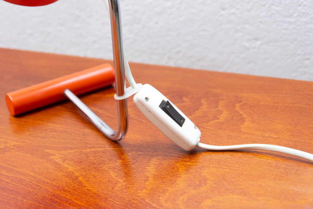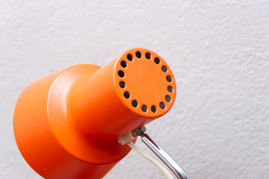 Czech modernist midcentury adjustable desk lamp by Josef Hurka for Napako. Orange lacquered metal. New wiring, plastic wire, standard E27 thread bulb
