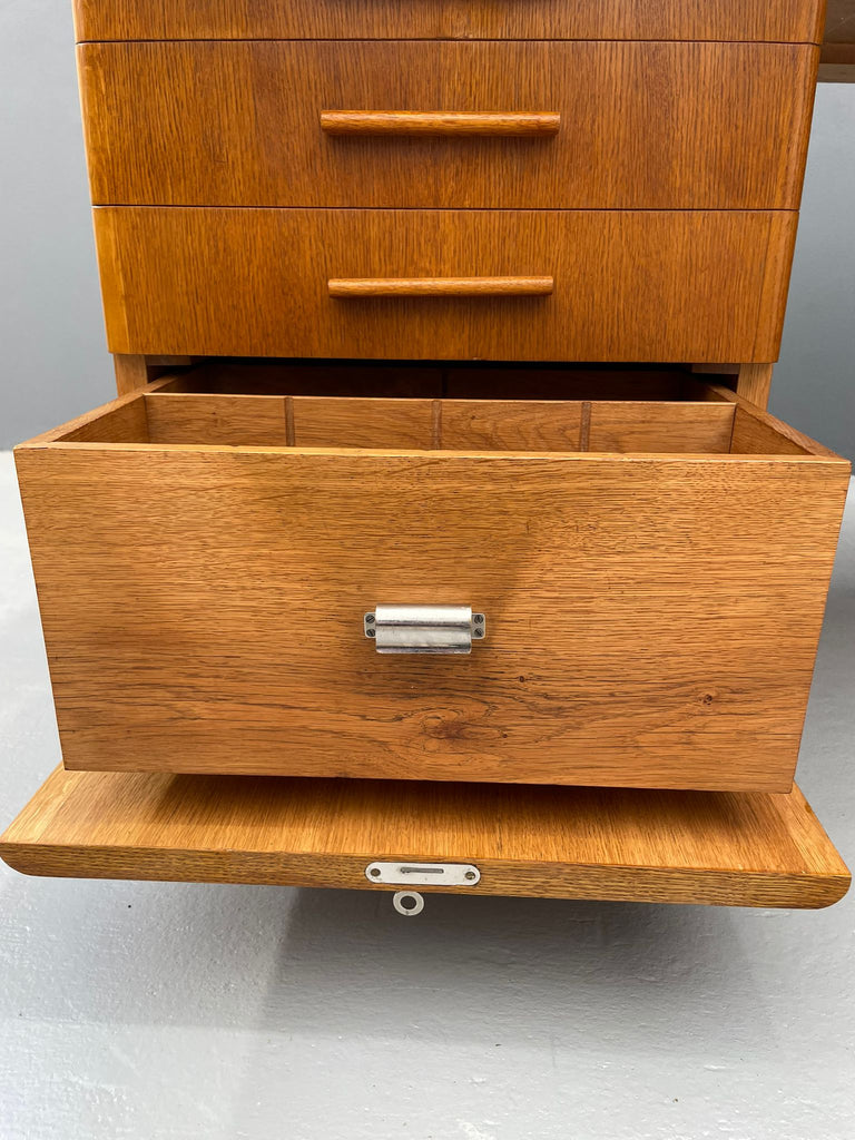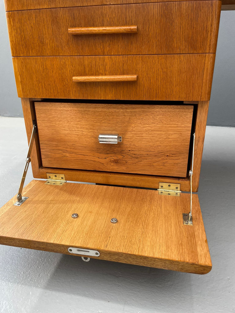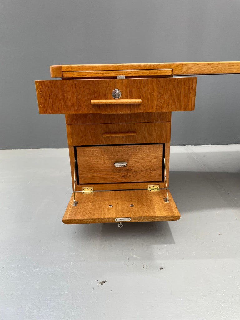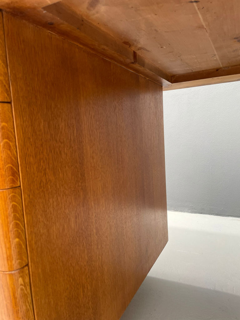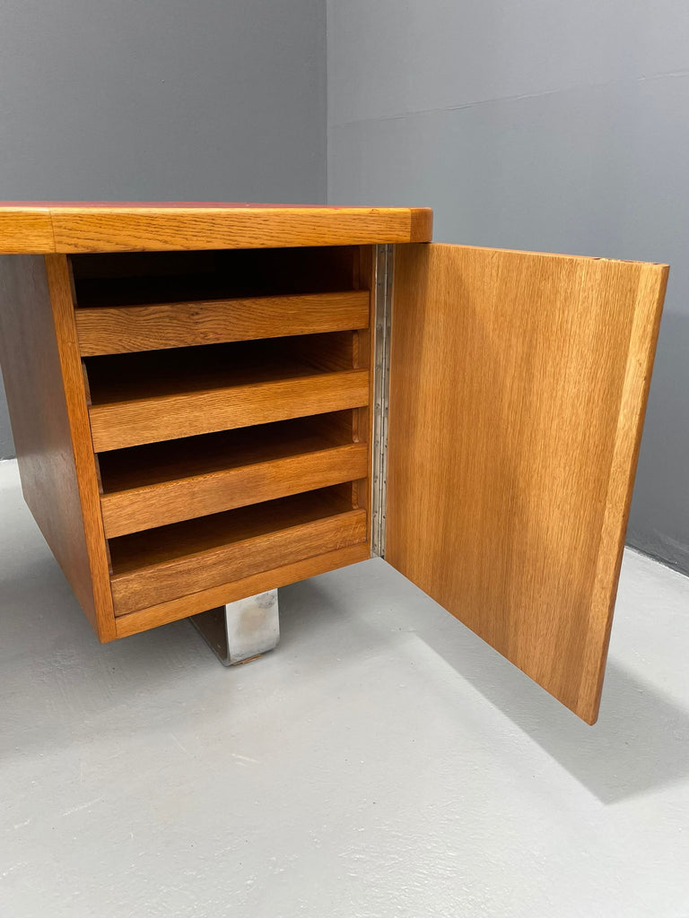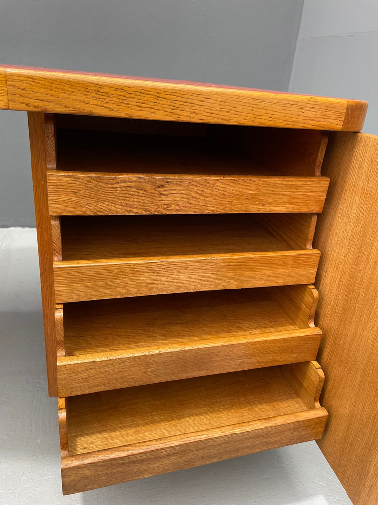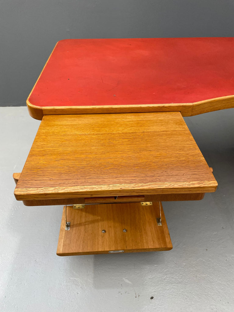 Bauhaus Walnut Writing Desk with Red Top – Vintage Mid-Century Design